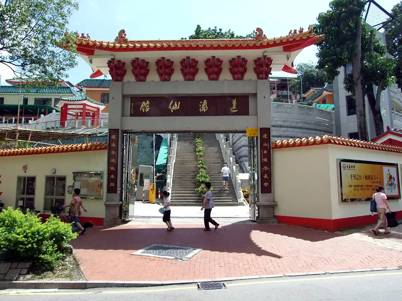 Fung Ying Seen Koon () was founded in 1929 as an affiliate of the Quanzhen Longmen Lineage () of Taoism. FYSK is a superb example of Taoist design and craftsmanship. It was named after the two fairy islands of Fung Lai and Ying Chau of the Bohai Sea. It Dominates the skyline from its commanding site on a hillside overlooking the New Territories town of Fanling in Hong Kong. Its massive orange-tiled double roof, built to traditional design and supported by stout red pillars of stone, catches the eyes immediately, inviting the visitor to step up to its entrance and inspect the many examples of artistic craftsmanship to be found within its grounds. Read more on Wikipedia