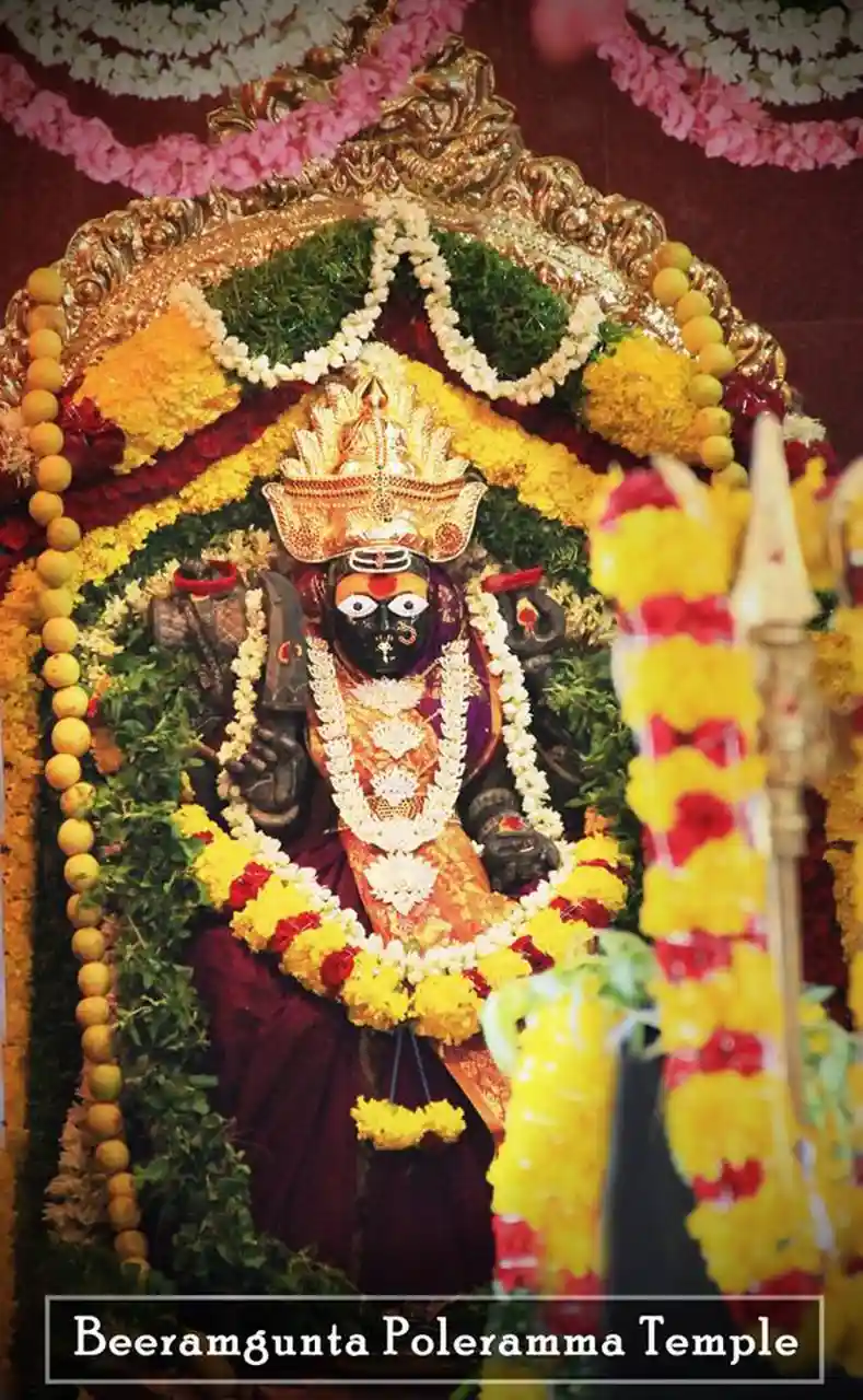 Beeramgunta Poleramma Temple is a re-established 200 years-old temple in the Nellore district of Andhra Pradesh, sacred to the goddess Poleramma. Poleramma is a pre-Vedic deity, who is predominantly worshipped in Andhra Pradesh, and a local form of Sakti. She is worshipped as Grama devata (goddess who protects the village). Read more on Wikipedia