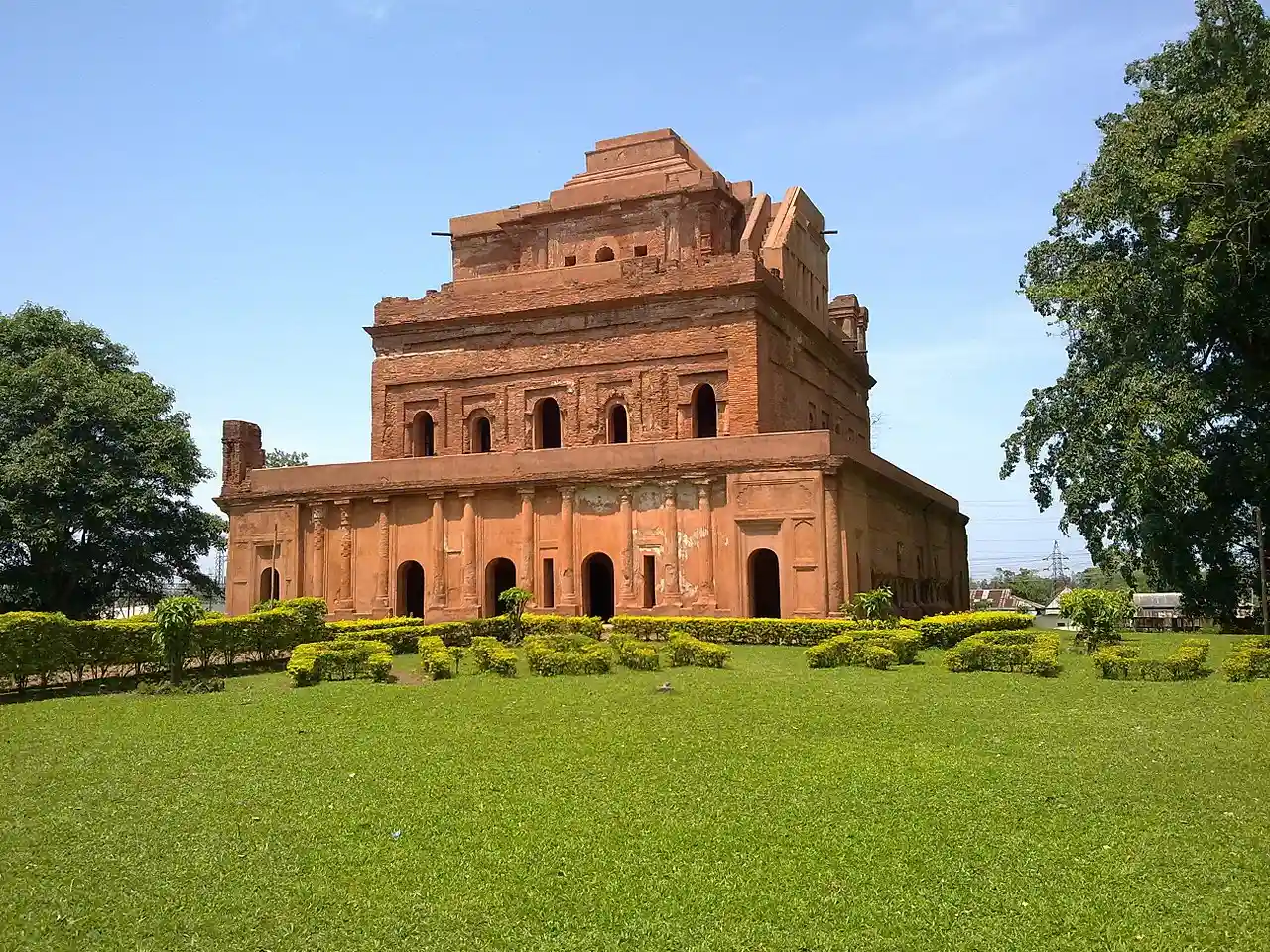 Kareng (Pron:/ˌkɑ:ɹɛŋ ˈgɑ:/, "royal palace"), also known as The Garhgaon Palace, is located in Garhgaon from Sivasagar, Assam, India. The palace structures were made of wood and stone. In 1751 Sunenphaa, son of Sukhrungphaa, constructed the brick wall of about in length surrounding the Garhgaon Palace and the masonry gate leading to it. Read more on Wikipedia