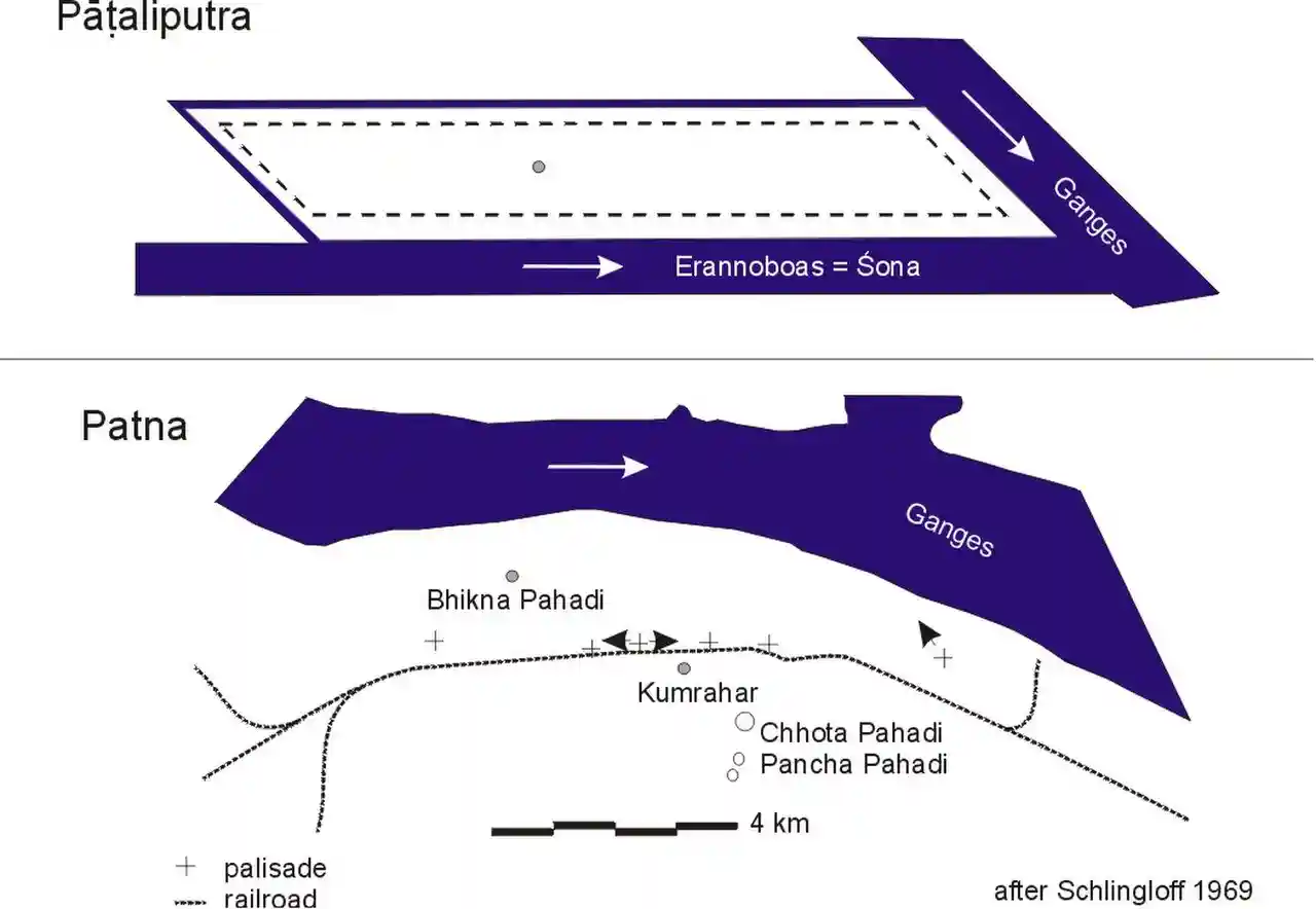 Pataliputra (IAST: ), adjacent to modern-day Patna, was a city in ancient India, originally built by Magadha ruler Ajatashatru in 490 BCE, as a small fort () near the Ganges river.. Udayin laid the foundation of the city of Pataliputra at the confluence of two rivers, the Son and the Ganges. He shifted his capital from Rajgriha to Pataliputra due to the latter's central location in the empire. Read more on Wikipedia