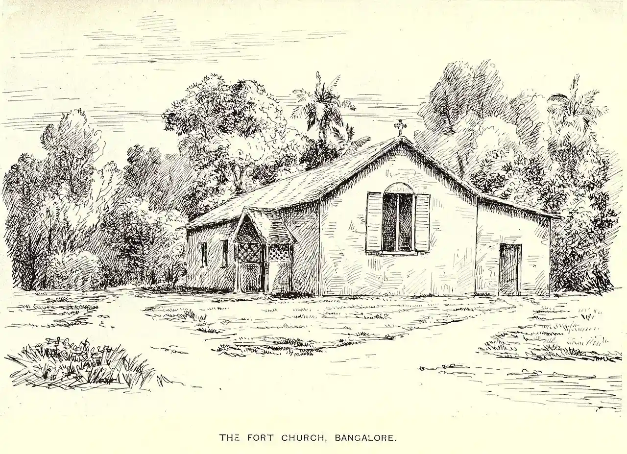 The Fort Church, Bangalore, was a church located within Bangalore Fort. The church was demolished to make place for the construction of the Vani Vilas Hospital. The Government of Mysore then allotted land in Chamrajpet for construction of a new church, St. Luke's Church, Bangalore. Early records refer to the Fort Church as the Drummer's Chapel, constructed by British soldiers after the fall of Tippu Sultan. The Fort Church, Bangalore was the first protestant church to be raised in Bangalore. Read more on Wikipedia