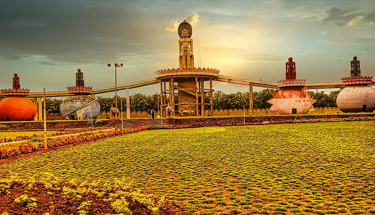 Navagraha Jain Temple or Navagraha Teertha or Navagraha Tirtha is situated at Varur near Hubli, Karnataka. Navagraha Teertha is one of the major pilgrim spots for the Jain community in India. The temple features a tall monolithic idol of the Shri 1008 Bhagavan Parshvanatha and the smaller statues of the other eight Jain teerthankaras. The statue is the tallest statue of the Jain deity Parshvanatha in India and weighs 185 tons. The statue stands on a high pedestal( total).Hubli gets magnificent ‘jinalaya’. The Hindu, 6 January 2009. Read more on Wikipedia