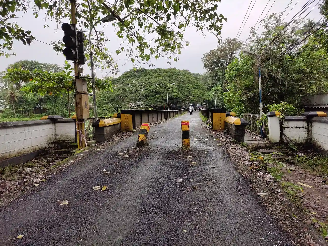 Irumbu Palam (Iron Bridge) in Thrippunithura, Kerala is one of the earliest iron bridges in India. The bridge was built across the Purna River connecting Tripunithura and Poonithura which is part of the present Kochi Municipal Corporation. It was built by the British in 1890 during the reign of Keralavarma V. The bridge, which is still in use is considered as an heritage landmark of the city of Thrippunithura. Read more on Wikipedia