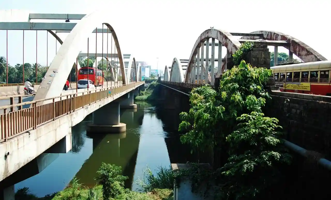 Marthanda Varma Bridge is a twin-bridge located in the city of Aluva, in the Ernakulam district, Kerala, India. The bridges lie on the NH 66 connecting the banks of the Periyar river. The old bridge opened in June 1940 is the second arch bridge in Asia, which was built in memory of Marthanda Varma, the sculptor of Travancore. A new bridge was built parallel to the old bridge to increase the traffic capabilities to four lanes, which was opened to the public in June 2002. The Marthanda Varma Bridge is regarded as one of the most important landmarks of Aluva and played a major role in its development into an industrial city. It has been featured in many Malayalam films and literary works. Read more on Wikipedia