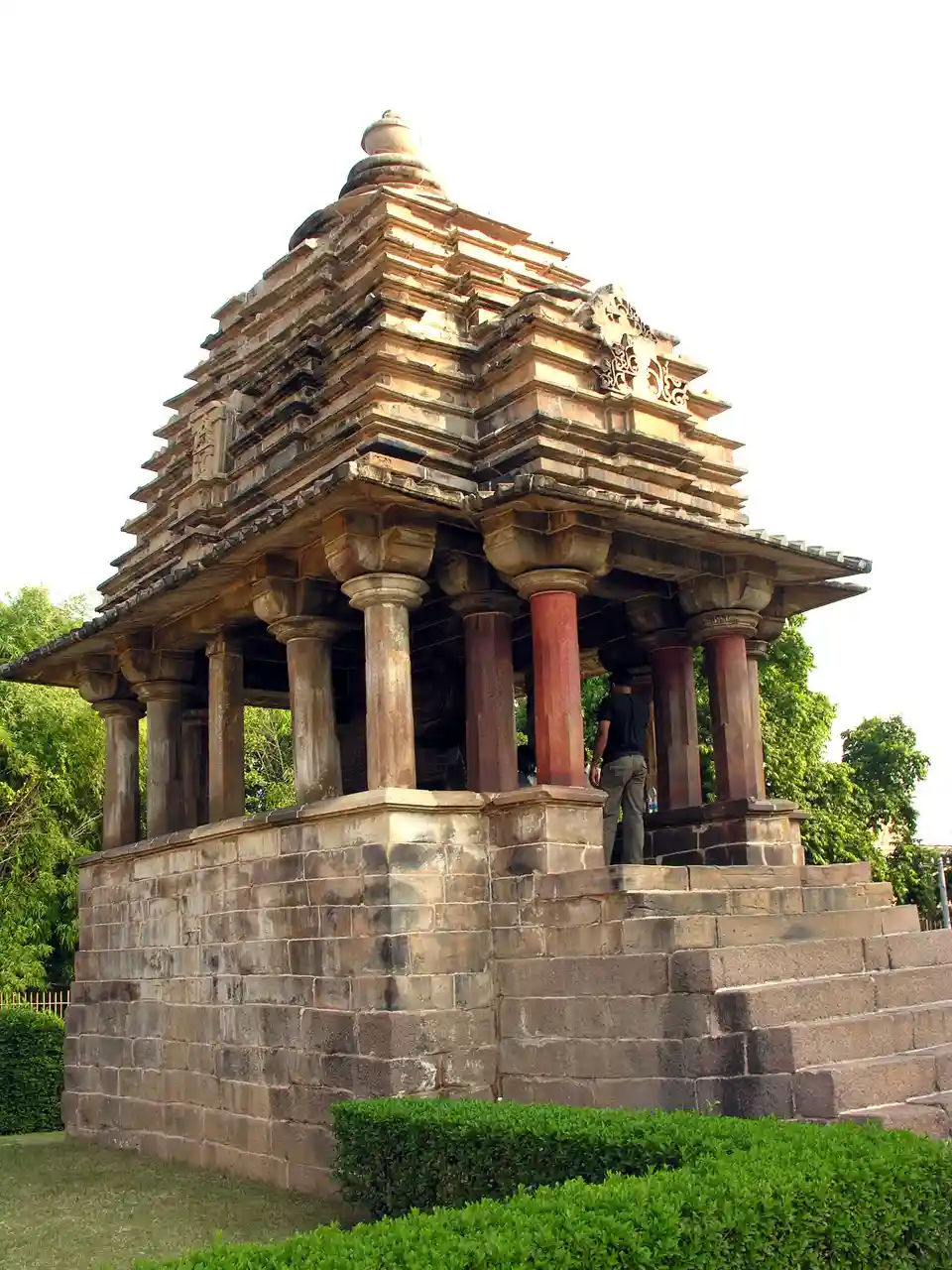 The Varaha Temple at Khajuraho (Devanagri: वराह मंदिर) enshrines a colossal monolithic image of Varaha, the boar incarnation of Lord Vishnu. This temple depicts Varaha as a purely animal form. The temple is located in the Western Group of Temple Complex Khajuraho Group of Monuments, a World Heritage Site inscribed by UNESCO in 1986 because of its outstanding architecture and testimony to the Chandela dynasty. Khajuraho is a small village in Chattarpur District of Madhya Pradesh, India. Read more on Wikipedia