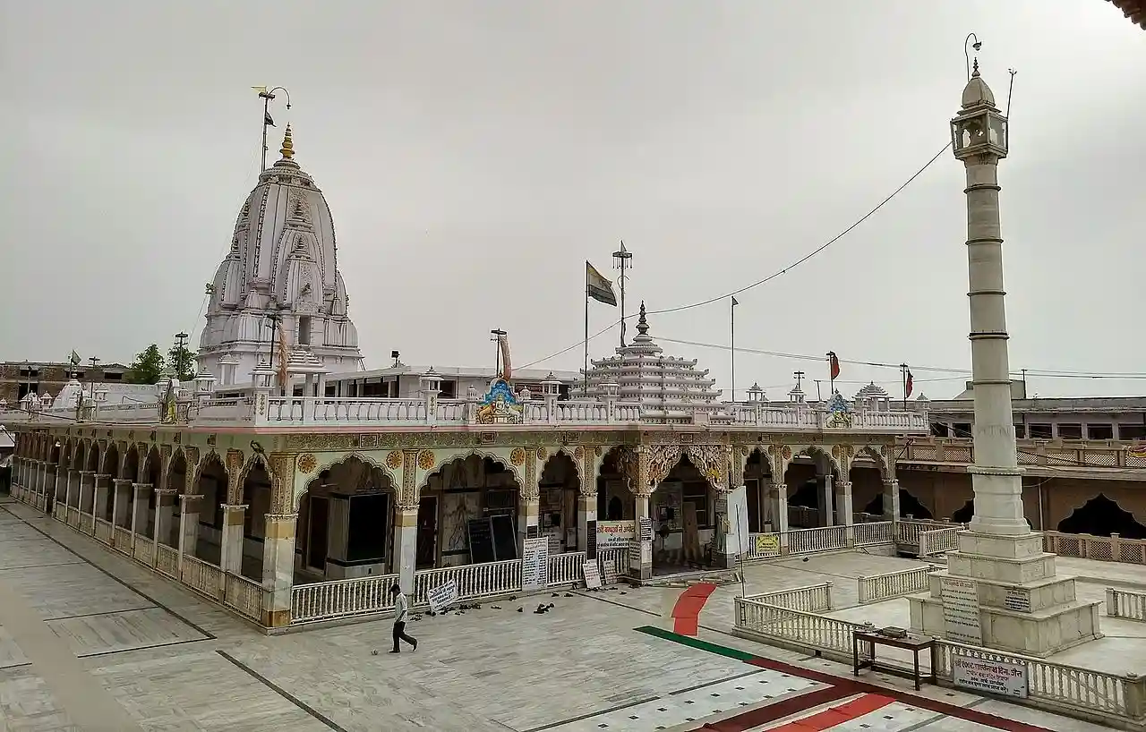 Tijara Jain Temple is a digambar Jain temple dedicated to Chandraprabhu. The temple is located in the hill town Tijara, in the Alwar district of Rajasthan, India. It is an Atishaya Kshetra (English: Place where Miracles happen). It is from Alwar and from Delhi. The location is a tirtha (pilgrimage site) for the Jains and a tourist attraction. Read more on Wikipedia