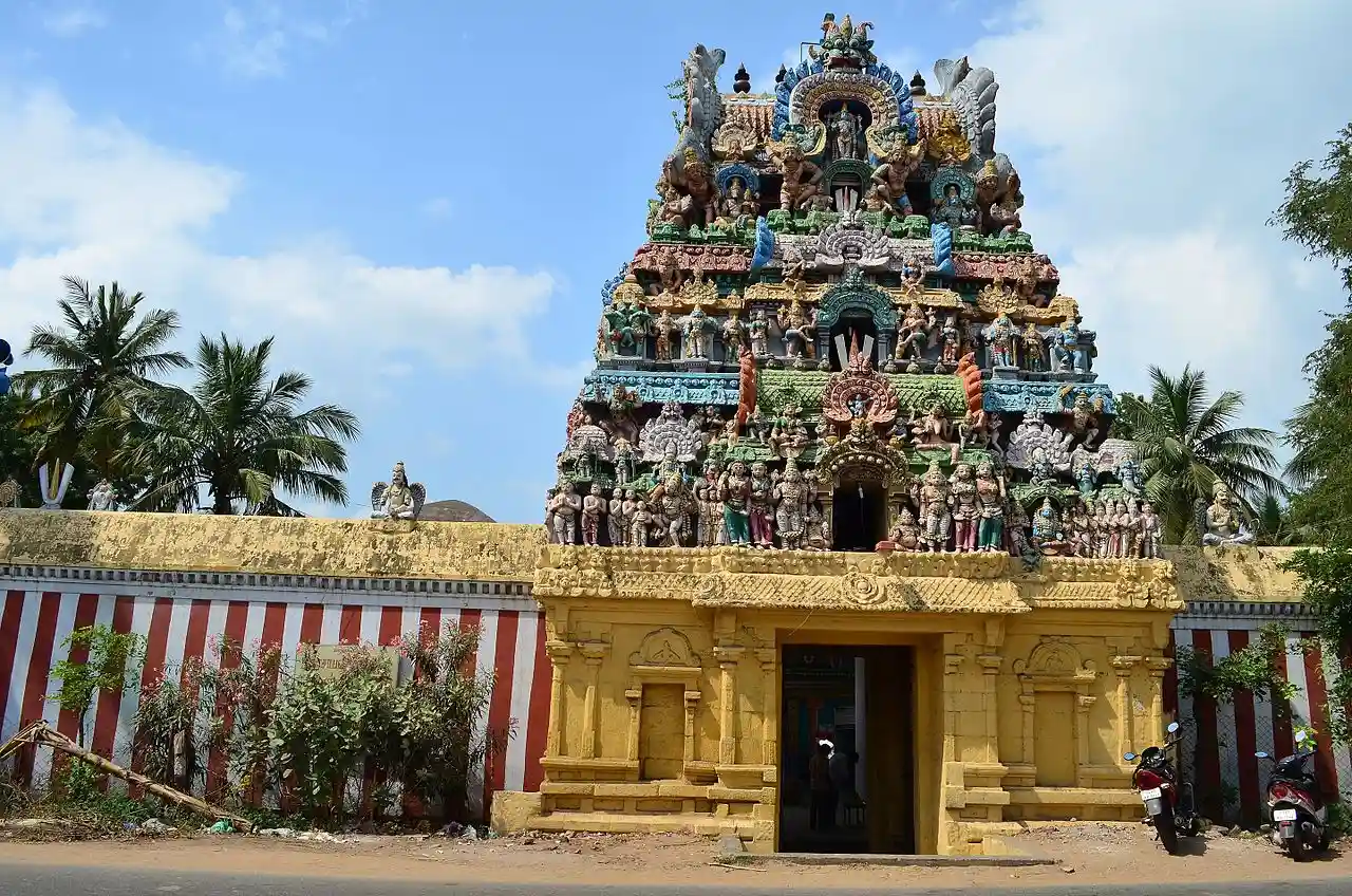 Hara Saabha Vimochana Perumal Temple in Thirukandiyur, a village in the outskirts of Thiruvayaru in the South Indian state of Tamil Nadu, is dedicated to the Hindu god Vishnu. Constructed in the Dravidian style of architecture, the temple is glorified in the Nalayira Divya Prabandham, the early medieval Tamil canon of the Alvar saints from the 6th–9th centuries CE. It is one of the 108 Divya Desam dedicated to Vishnu, who is worshipped as Hara Saabha Vimochana Perumal and his consort Lakshmi as Kamalavalli Nachiyar. Read more on Wikipedia