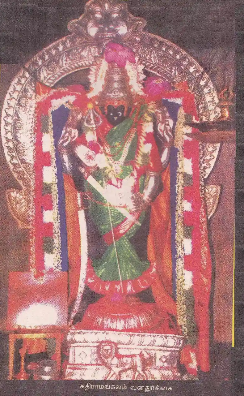 Kathiramangalam Vana Durga, also known as Vana Durga Parameshwari Amman, is a temple situated in Kathiramangalam, Thanjavur District in Tamil Nadu. The temple is located 25 kilometers away from Kumbakonam and 15 kilometers from Mayiladuthurai. Read more on Wikipedia