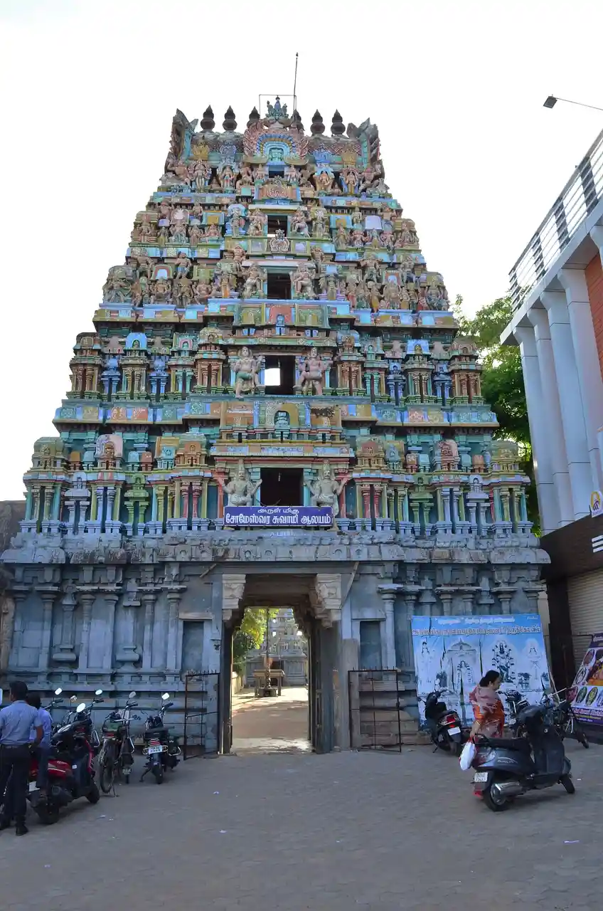 Someswarar Temple is a Hindu temple dedicated to the deity Shiva, located in Kumbakonam, Tamil Nadu, India. Shiva is worshipped as Someswarar and is represented by the lingam. His consort Parvati is depicted as Somasundari. The presiding deity is revered in the 7th century Tamil Saiva canonical work, the Tevaram, written by Tamil saint poets known as the nayanars and classified as Paadal Petra Sthalam. Read more on Wikipedia