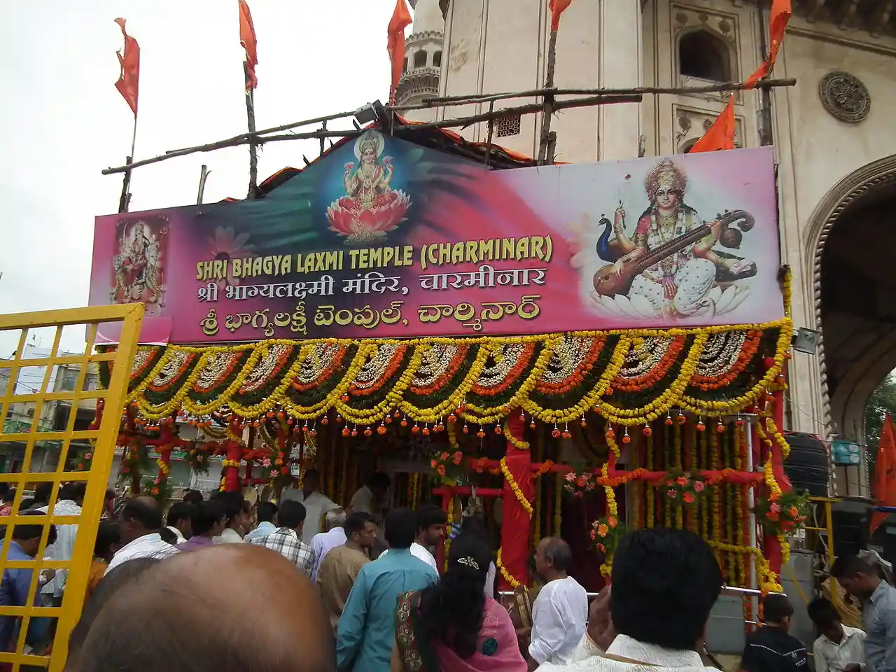 Bhagyalakshmi temple is a shrine dedicated to a Hindu goddess located in Hyderabad, India. This temple is located adjacent to the city's historic monument Charminar. Charminar is under care of Archaeological Survey of India (ASI), while a Hindu trust manages the temple dedicated to the Goddess Lakshmi. The origin of the temple is currently disputed and the current structure that houses the idol was erected in the 1960s. In 2012, Telangana High Court stopped any further expansion of the temple. In 2013, ASI declared the temple structure as an unauthorised construction. Read more on Wikipedia