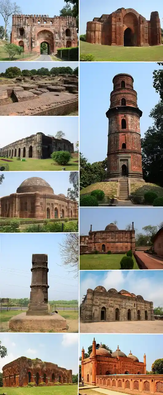 Gauḍa (also known as Gaur, Gour," Lakhnauti, Lakshmanavati and Jannatabad) is a historic city of Bengal in the eastern part of the Indian subcontinent, and one of the most prominent capitals of classical and medieval India, being the capital city of Bengal under several kingdoms. The Gauḍa region was also a province of several pan-Indian empires. During the seventh century, the Gour Kingdom was founded by King Shashanka, whose reign corresponds with the beginning of the Bengali calendar. Gour gradually became synonymous with Bengal and Bengalis. It was conquered by Bakhtiyar Khalji, a lieutenant of the Ghurid ruler Muhammad of Ghori in 1203. Read more on Wikipedia