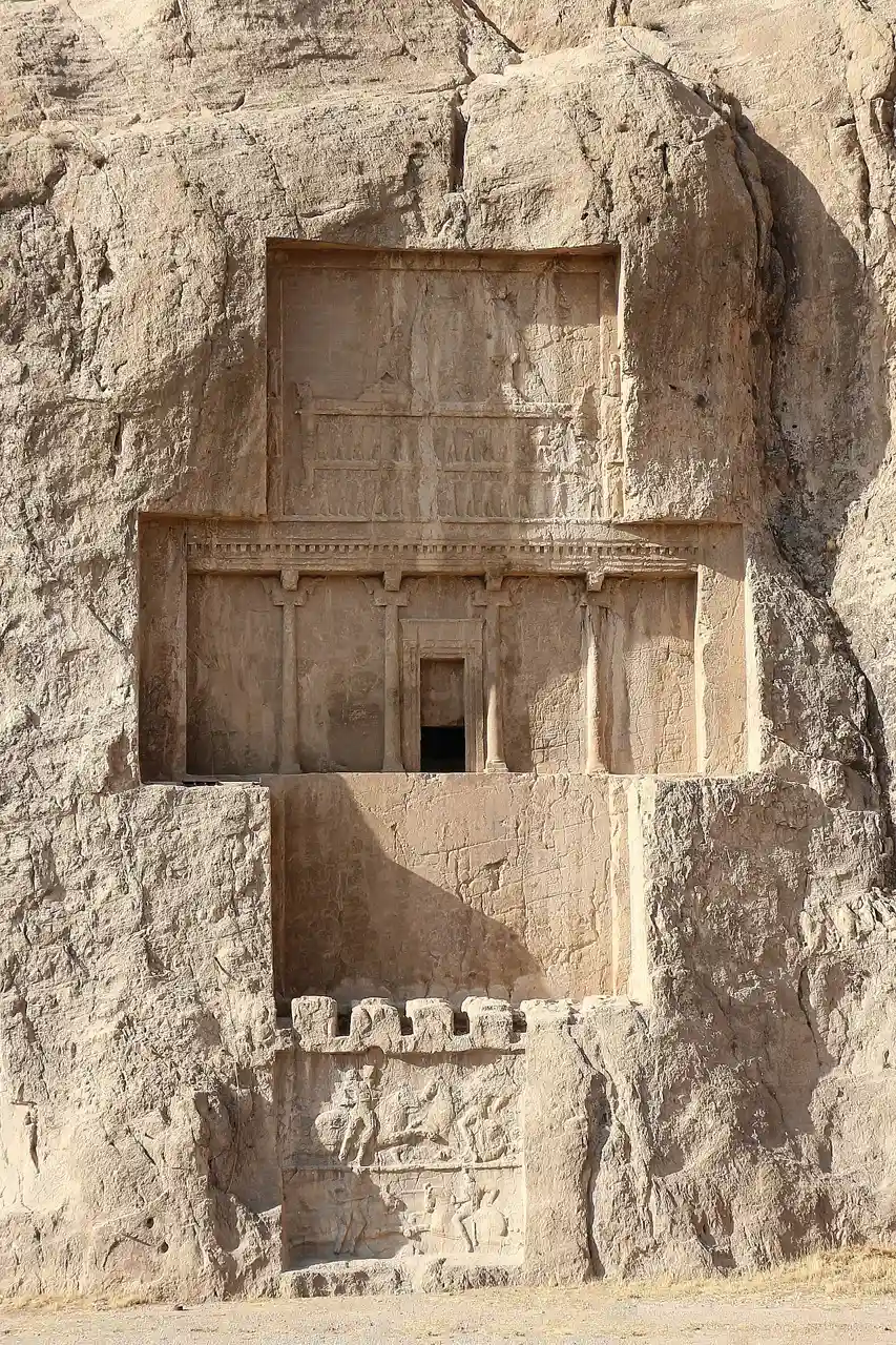 The tomb of Darius the Great (or Darius I) is one of the four tombs for Achaemenid kings at the historical site of Naqsh-e Rostam, located about northwest of Persepolis in Iran. They are all situated at a considerable height above ground-level. Read more on Wikipedia