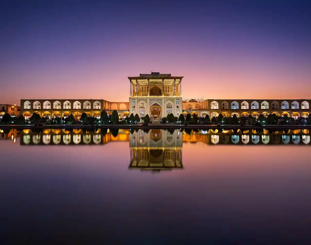 Ali Qapu (, ‘Ālī Qāpū) is an imperial palace in Isfahan, Iran. It is located on the western side of the Naqsh-e Jahan Square, opposite to Sheikh Lotfollah Mosque, and had been originally designed as a vast portal entrance to the grand palace which stretched from the Naqsh-e Jahan Square to the Chahar Baq Boulevard. The palace served as the official residence of Persian Emperors of the Safavid dynasty. UNESCO inscribed the Palace and the Square as a World Heritage Site due to its cultural and historical importance. The palace is forty-eight meters high and there are six floors, each accessible by a difficult spiral staircase. In the sixth floor, Music Hall, deep circular niches are found in the walls, having not only aesthetic value, but also acoustic. Ali Qapu is regarded as the best example of Safavid architecture and a symbol of Iran's Islamic heritage. Read more on Wikipedia