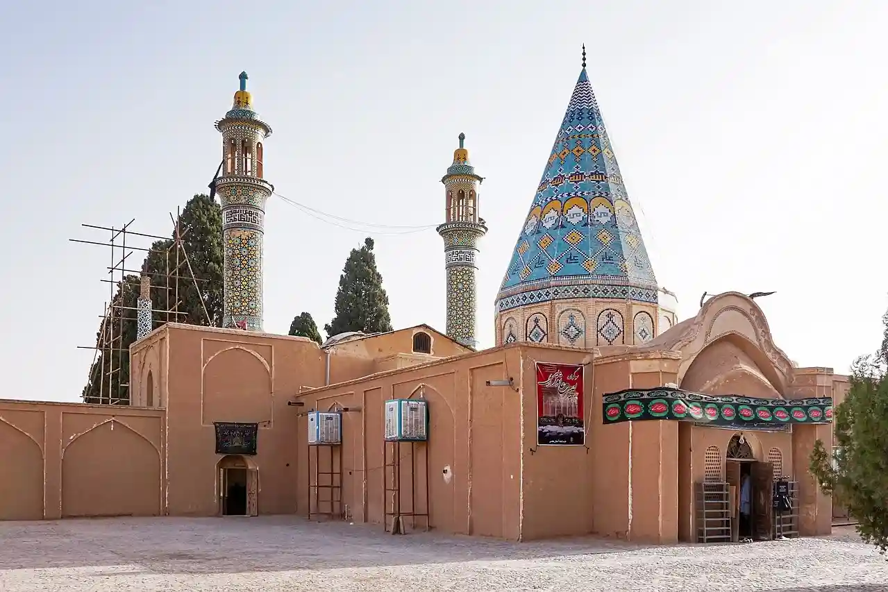 The Emamzadeh Ebrahim () is a historical structure in Kashan, Iran. The Emamzadeh belongs to the Qajar era. It is well known for its turquoise dome, tiled minarets, pleasant yard and beautiful iwan. Paintings, tiles and decorations with cut mirrors have been added later in the early 20th century.' Read more on Wikipedia