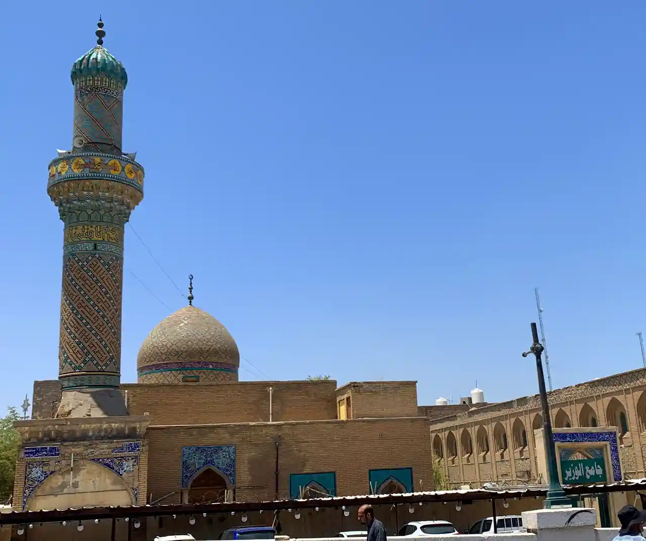Al-Wazeer Mosque () is an old mosque in Baghdad, Iraq, which is considered a cultural heritage. The mosque was built by the Wazir of Baghdad Hassan Pasha in 1599 during the Ottoman era. Later the mosque witnessed several renovation and restoration works. The main characteristic of the mosque is its Ottoman architectural style.Historical Features of the Tigris River in Baghdad Rusafa, which extends from the school Al-Mustansiriya to the Abbasid Palace. UNESCO. Retrieved January 3, 2018. It is located in al-Rusafa district behind the Souk al-Sarai, near the riverbank of the Tigris River. The mosque contains prayer space for over more than 400 worshippers. On the left side of the mosque, there is a round-shaped minaret. The attached garden extends to the riverbank of the Tigris river.مسجد الوزير. Masajed Iraq. Retrieved January 3, 2018. Read more on Wikipedia