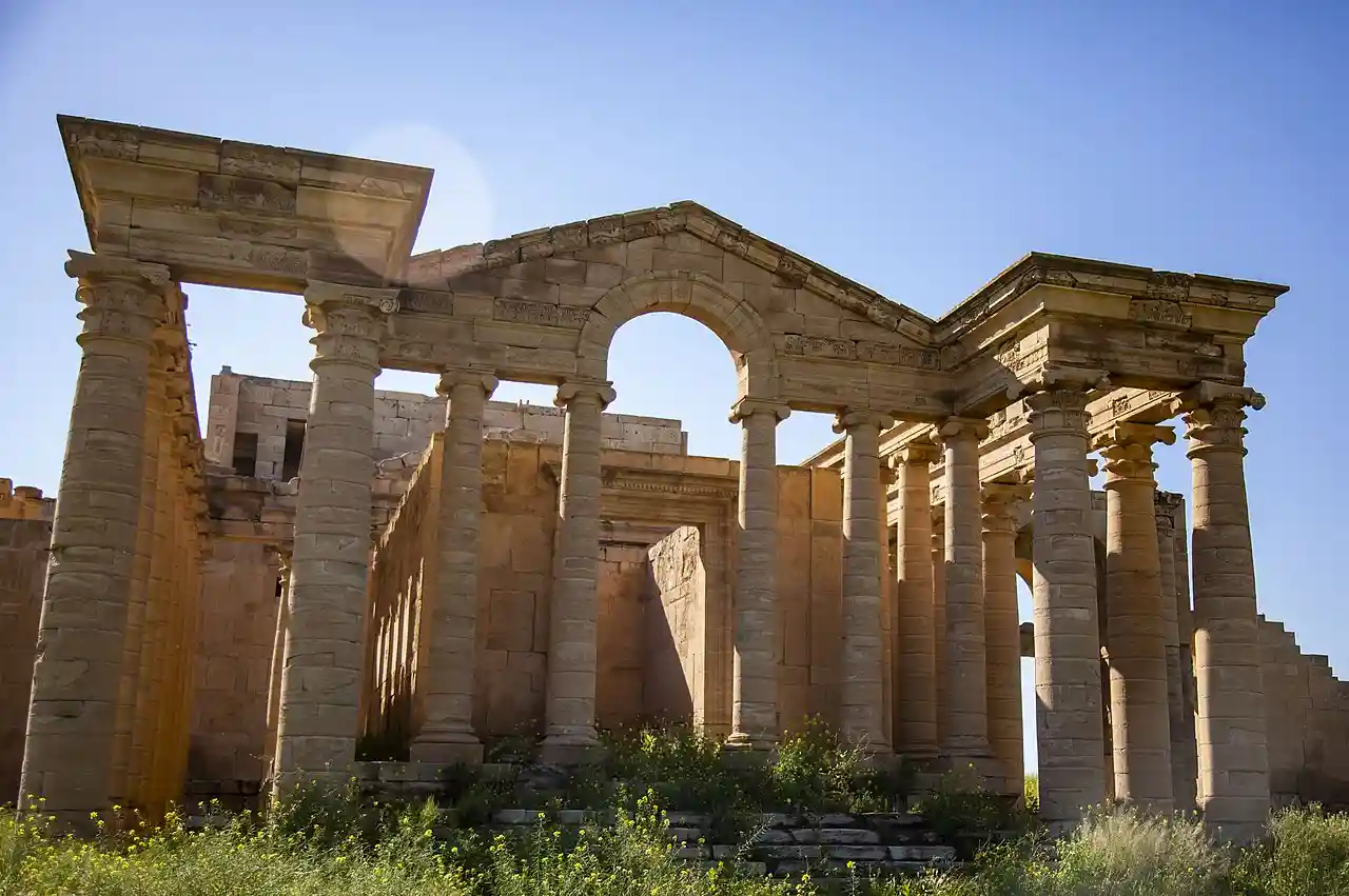 Hatra (; ; ) was an ancient city in Upper Mesopotamia located in present-day eastern Nineveh Governorate in northern Iraq. The city lies northwest of Baghdad and southwest of Mosul. It is considered the richest archaeological site from the Parthian Empire known to date. Read more on Wikipedia
