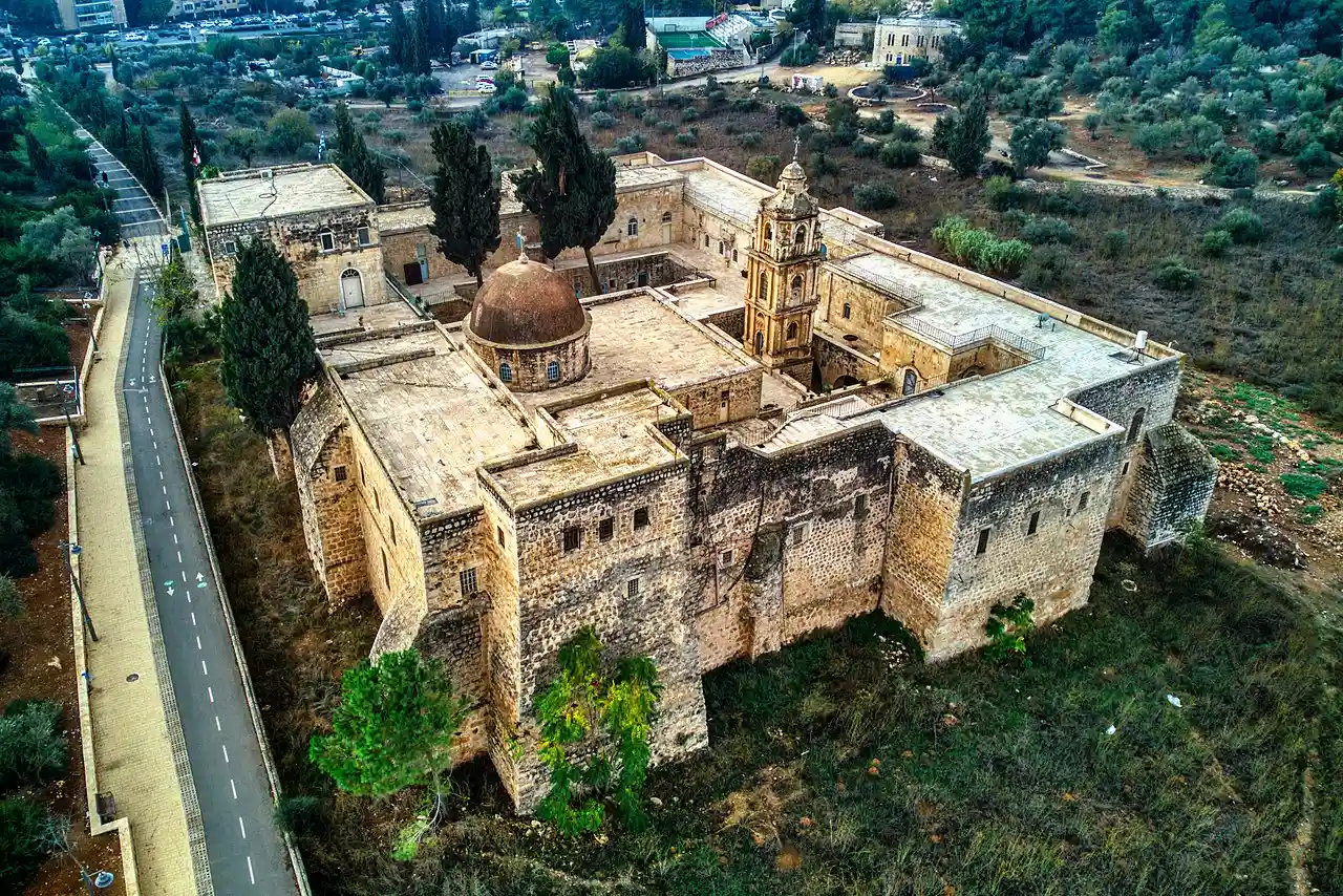 The Monastery of the Cross (, Dayr al-Salīb; ; , , jvris monast'eri) is an Eastern Orthodox monastery near the Nayot neighborhood of Jerusalem. It is located in the Valley of the Cross, below the Israel Museum and the Knesset. Read more on Wikipedia