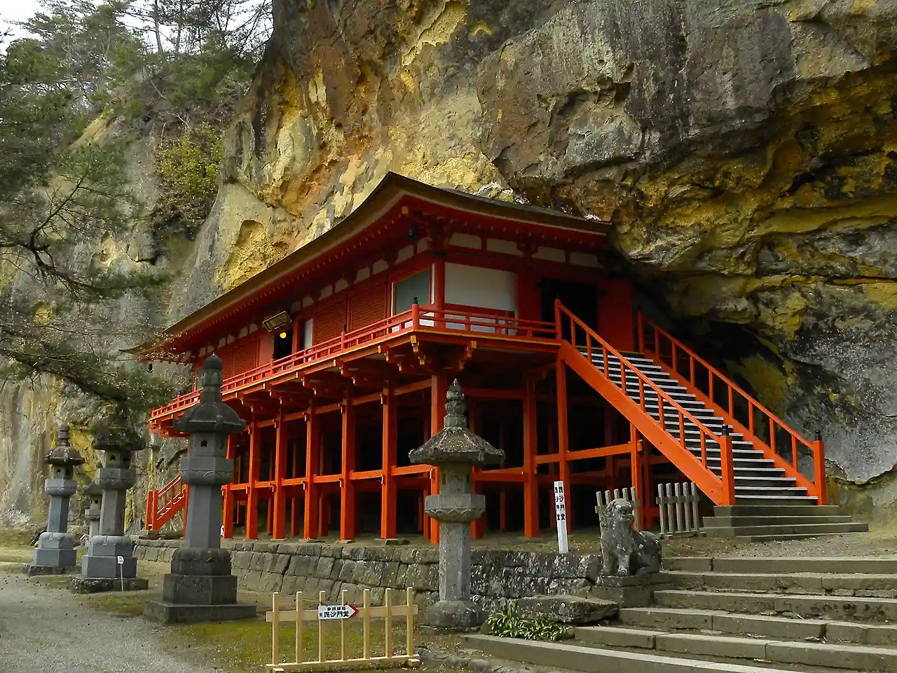 is a Tendai sect Buddhist temple in Hiraizumi in southern Iwate Prefecture in the TÅhoku region of Japan. Its main image is a stone image of Bishamon-ten. Its formal name is the . The grounds have been designated a National Historic Site since 2005 Read more on Wikipedia