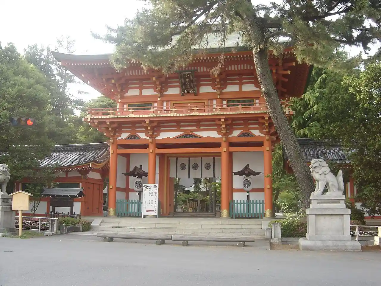 is a Shinto shrine located in Kita-ku, Kyoto, Japan. It was originally established for patrons to pray for safety from an epidemic, though it has evolved into a shrine where patrons can pray for general good health. The shrine complex is embedded in a forest of large trees northwest of Daitoku-ji and includes many minor shrines in addition to the main shrine, or honden. On every second Sunday in April, one of the 3 major festivals in Kyoto, Yasurai Matsuri, is held at the shrine. The word means "newly constructed." Read more on Wikipedia