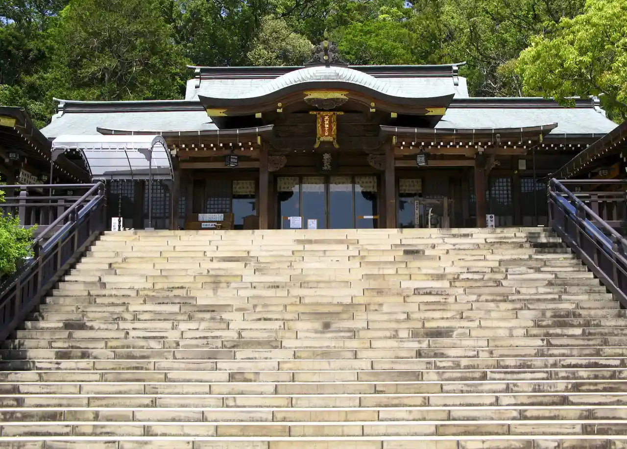 is the major Shinto shrine of Nagasaki, Japan, and one of the major locations of the Nagasaki Kunchi, originally celebrated on the ninth day of the ninth lunar month and now celebrated on the fixed dates of October 7 to October 9. It is located in the northern part of the city, on the slopes of Mount Tamazono, and features a 277-step stone staircase leading up the mountain to the various buildings that comprise the shrine. Read more on Wikipedia