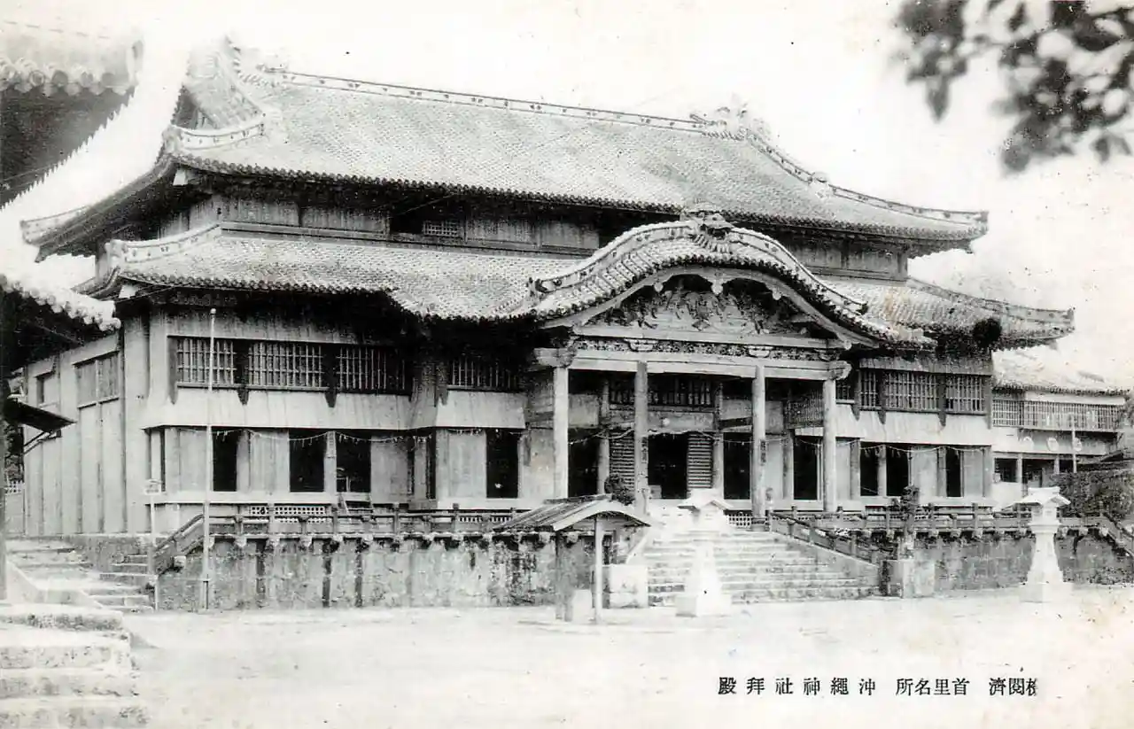 is a Shinto shrine in Naha, Okinawa Prefecture, Japan. Established at the end of the Taishō period on the site of Shuri Castle, the main hall of which was reused as the haiden (hall of worship), the shrine buildings were destroyed in May 1945 during the Battle of Okinawa. Both castle and shrine have since been rebuilt while this phase has been written out of the "official history" currently told at Shurijō Castle Park. Read more on Wikipedia