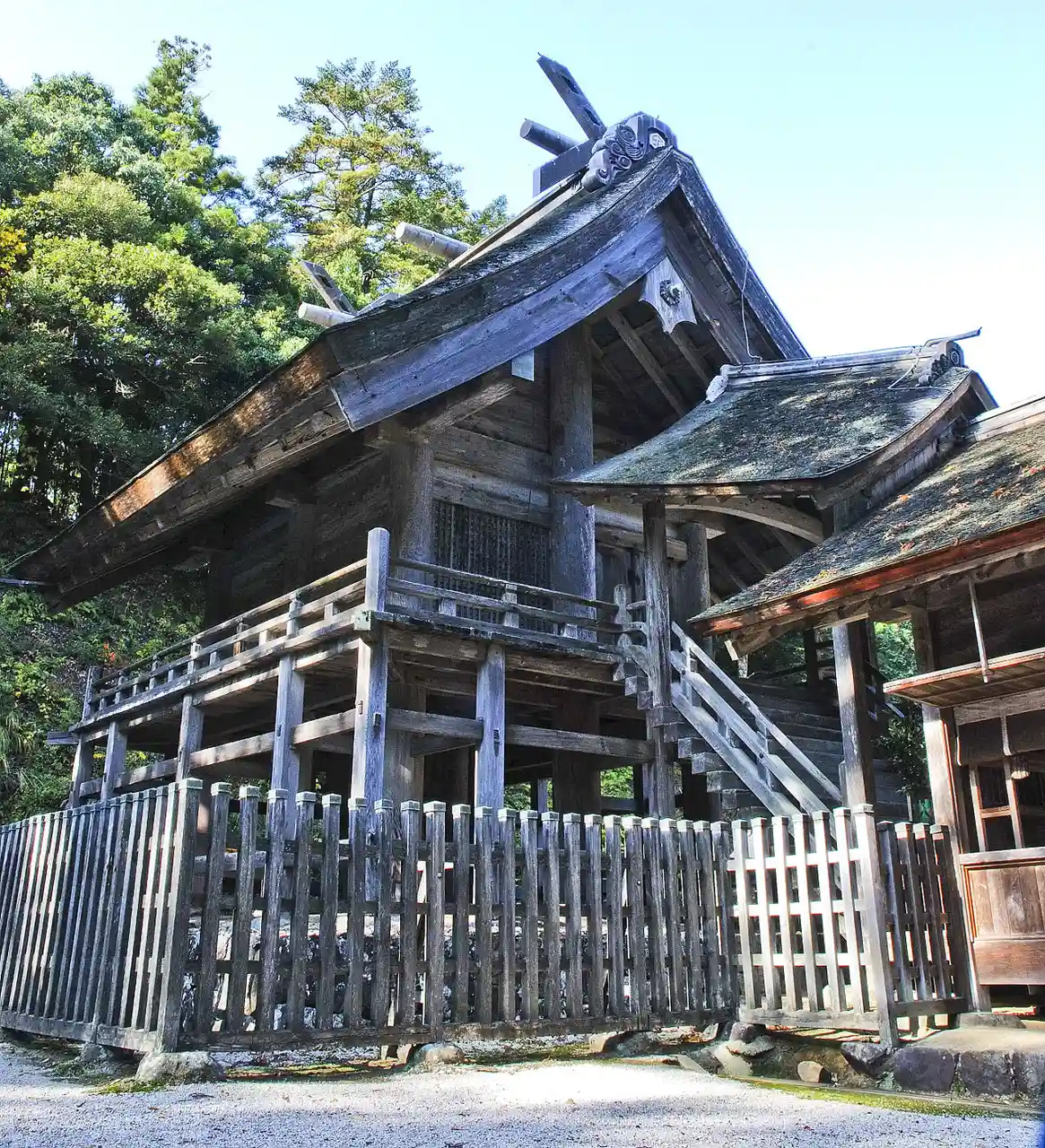 is a Shinto shrine in Matsue, Shimane Prefecture, Japan. The Taisha-zukuri Honden of 1583 is a National Treasure. The coeval branch Inari shrine is an Important Cultural Property. Read more on Wikipedia