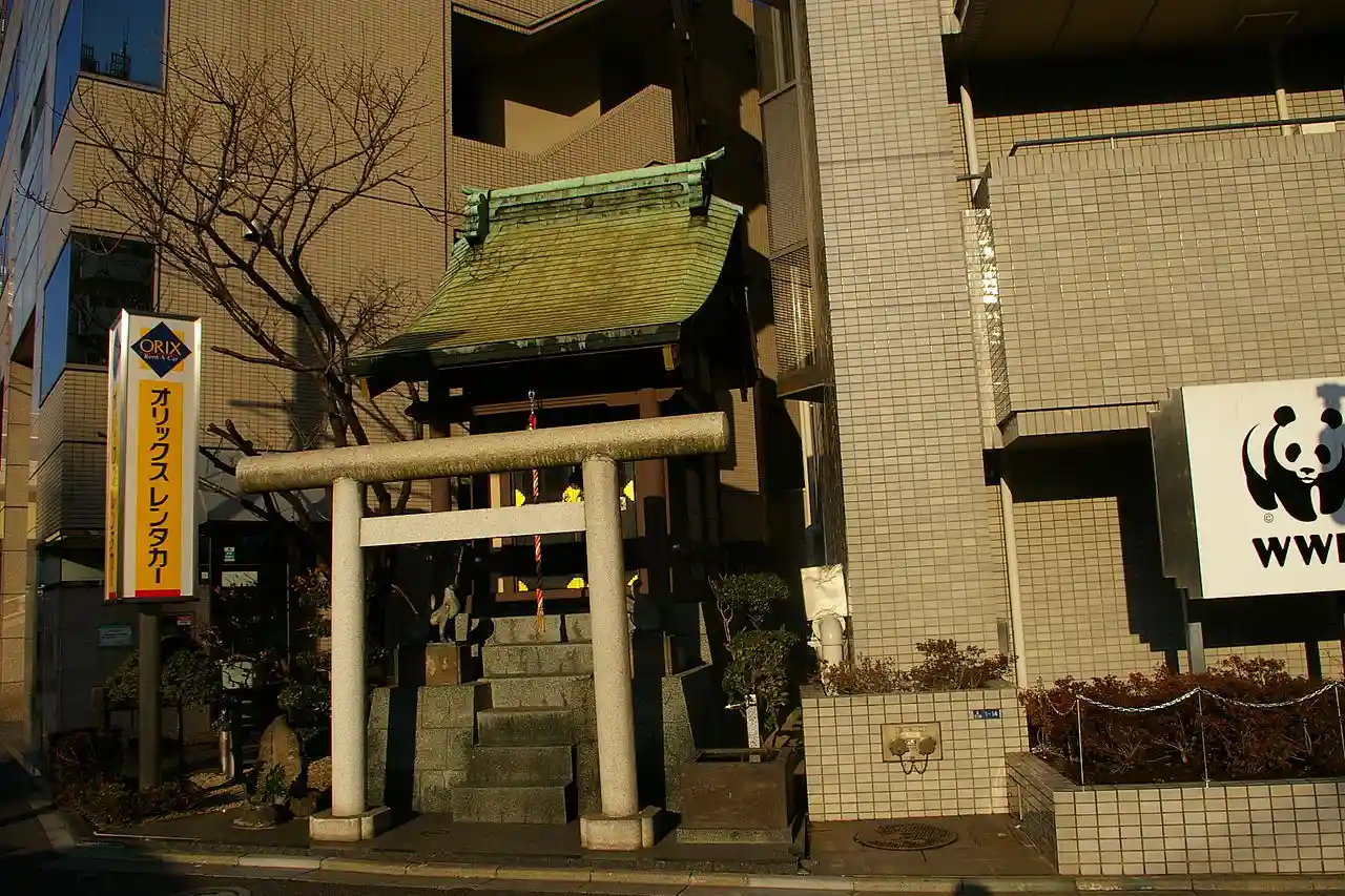 is a Shinto shrine in Shiba 3-chōme, Minato-ku, Tokyo, Japan established to worship Inari. It is located on Mita Dōri next to the Nippon Life Insurance Akabane Bridge building, and across from the Saiseikai Central Hospital. Its roof is made from copper, and the shrine is constructed from concrete. Read more on Wikipedia