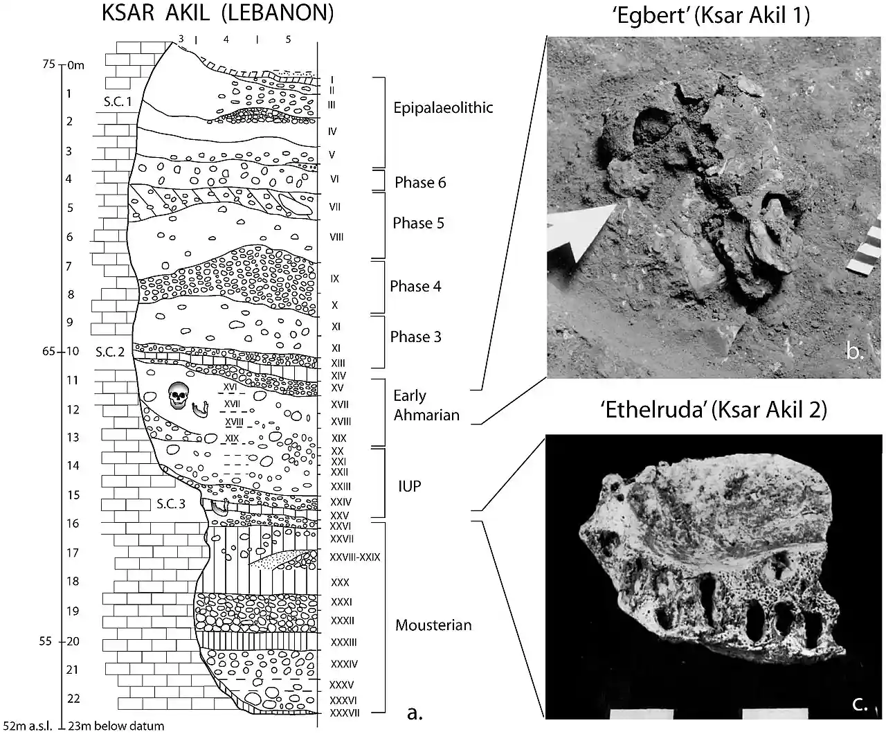 Ksar Akil (also Ksar 'Akil or Ksar Aqil) is an archeological site northeast of Beirut in Lebanon. It is located about west of Antelias spring on the north bank of the northern tributary of the Wadi Antelias. It is a large rock shelter below a steep limestone cliff. Read more on Wikipedia