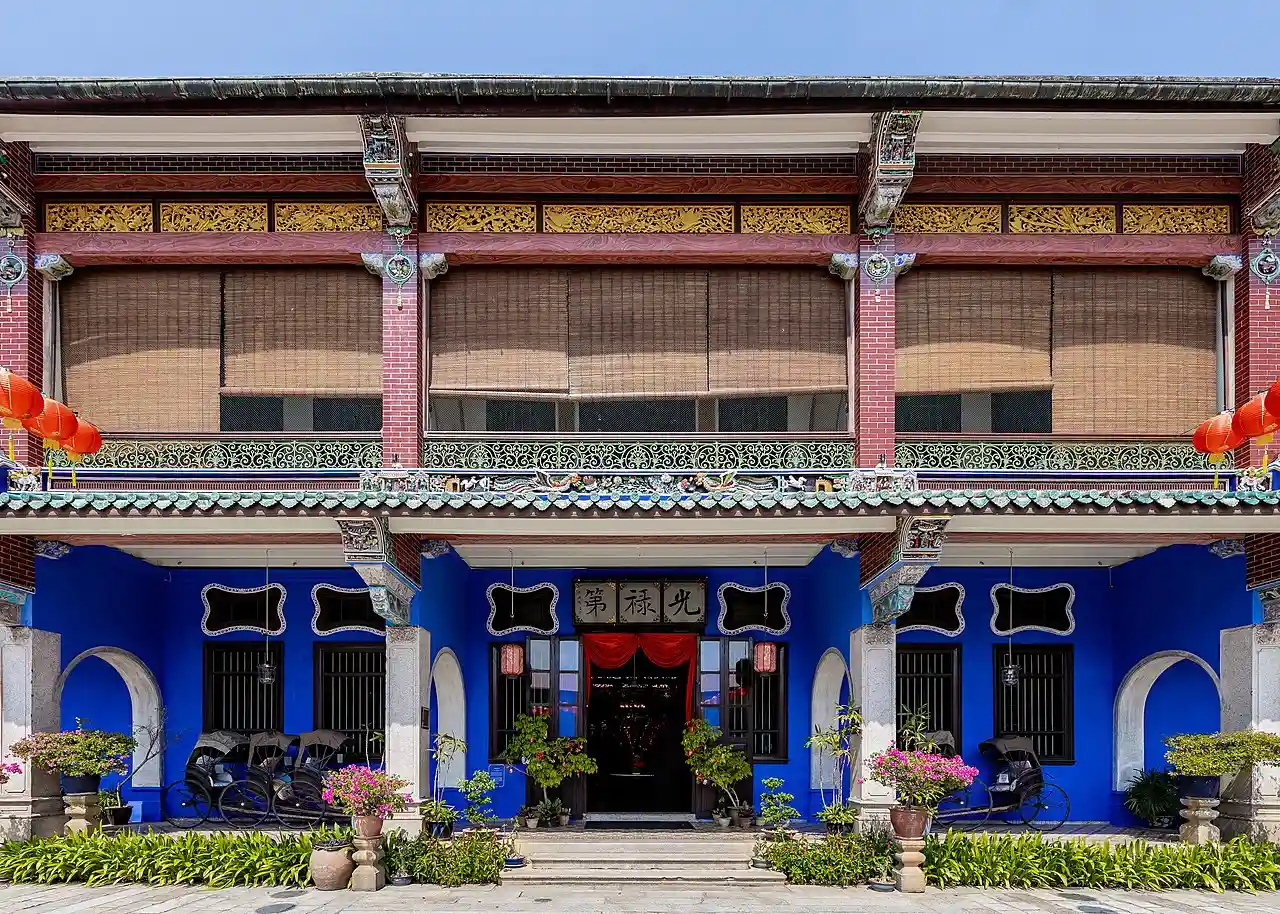 The Cheong Fatt Tze Mansion is a government gazetted heritage building located on Leith Street in George Town, Penang, Malaysia. The mansion's external decorations and indigo-blue outer walls make it a very distinctive building, and it is sometimes referred to as The Blue Mansion. Built by the merchant Cheong Fatt Tze at the end of the 19th century, the mansion has 38 rooms, 5 granite-paved courtyards, 7 staircases and 220 vernacular timber louvre windows. It served as Cheong's private residence as well as the seat of his business activities in Penang. Read more on Wikipedia