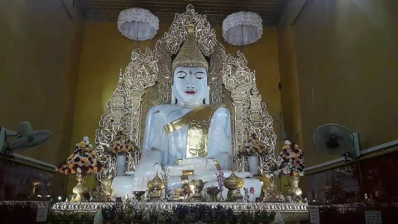 Kyauktawgyi Buddha Temple (; also known as the Great Marble Image) is a well-known Buddhist temple located near the southern entry to Mandalay Hill, Myanmar, opposite the northeastern corner of the Mandalay moat. The image of the Buddha is officially known as Maha Thetkya Mayazein (; ). Read more on Wikipedia