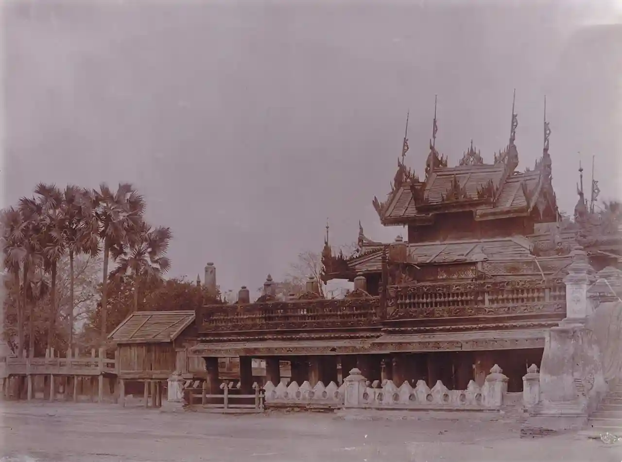 Mogaung Monastery () is a Buddhist monastery in Mandalay, Myanmar (Burma). The wooden monastery was built by the Mogaung Mibaya, a minor queen of King Pagan Min in 1847. The monastery's dimensions are and is supported by 342 teak pillars. The monastery's wooden carvings are adorned with motifs from the Ramayana. Read more on Wikipedia