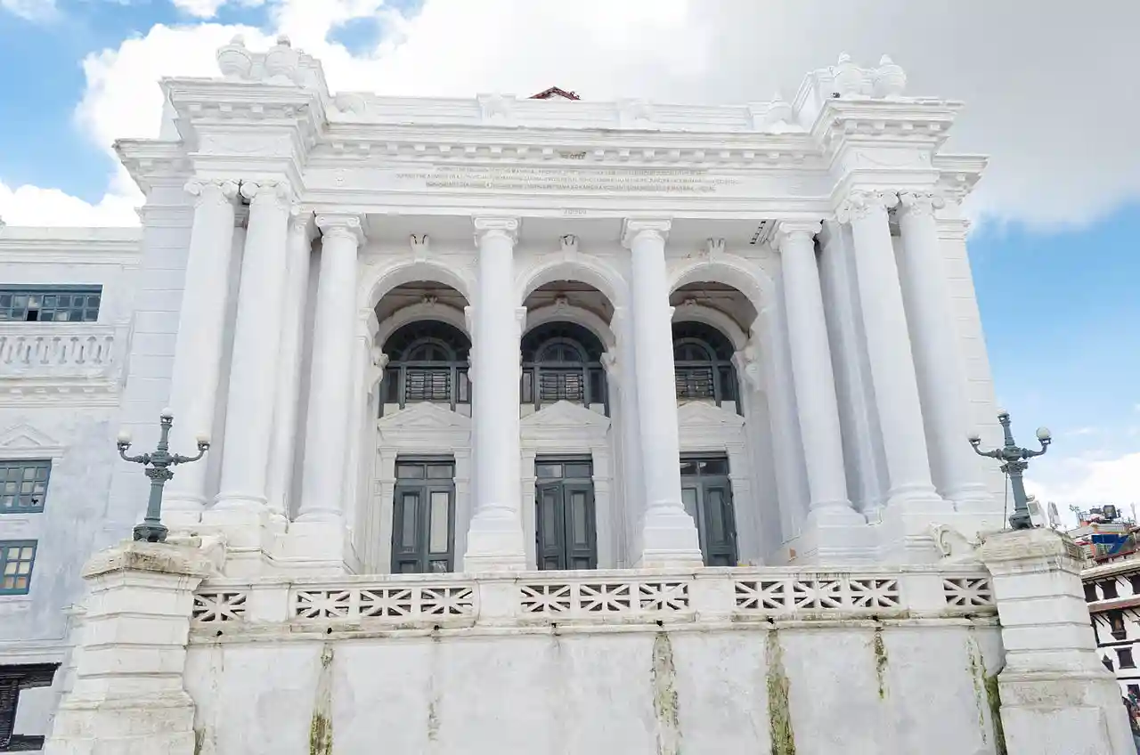 Gaddi Baithak is a neoclassical palace in Kathmandu Durbar Square. It was built by Chandra Shumsher Jang Bahadur Rana in 1908, and it was used for to coronations and to welcome head of states from other countries. Read more on Wikipedia