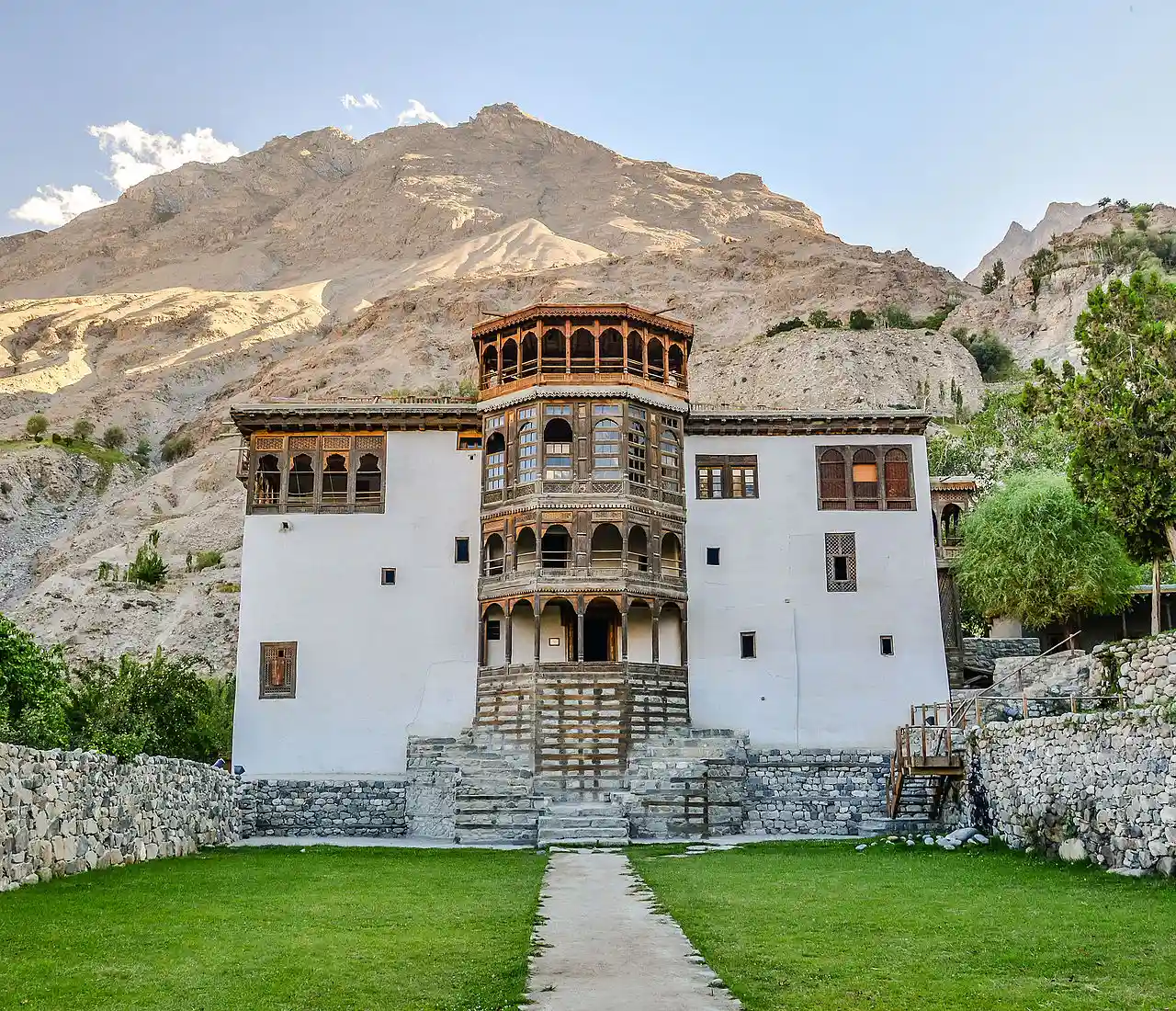 Khaplu Palace, locally known as Yabgo Khar, is an old fort and palace located in Khaplu, a city in Gilgit-Baltistan, Pakistan. The palace, considered an architectural heritage site and a significant tourist attraction, was built in the mid-19th century to replace an earlier-dated fort located nearby. It served as a royal residence for the Raja of Khaplu. Read more on Wikipedia