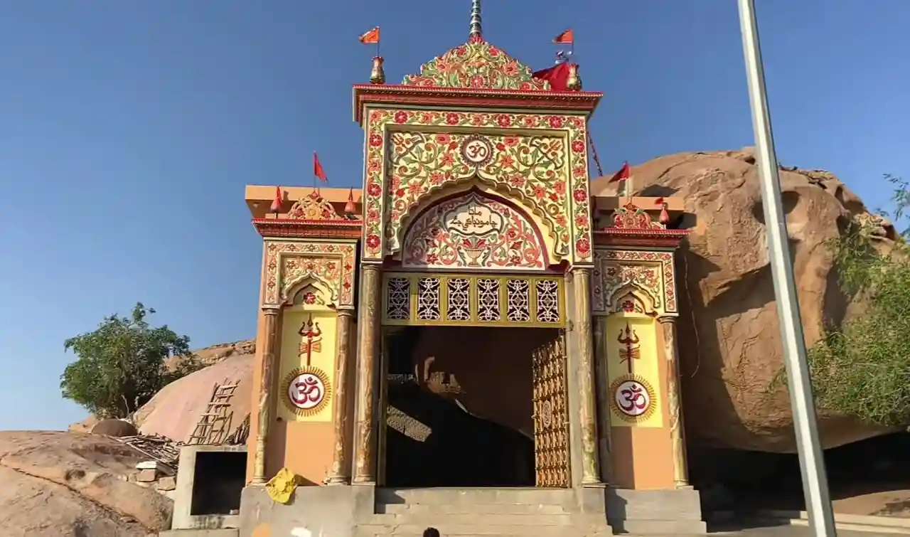 Churrio Jabal Durga Mata Temple (چوڙيو جبل, pronunciation: choo-ryo ja-bal) is situated on a hill named Churrio, located in Nangarparkar in the Tharparkar District in the Sindh province of Pakistan. This is a historic temple and is visited annually by 200,000 pilgrims on Shivratri. Hindus bring cremated ashes of their departed beloveds to immerse in the holy water in the temple. The valuable and multi-coloured hill supporting the temple is mined for its rare and expensive granite, which is posing a serious threat to the temple. Read more on Wikipedia