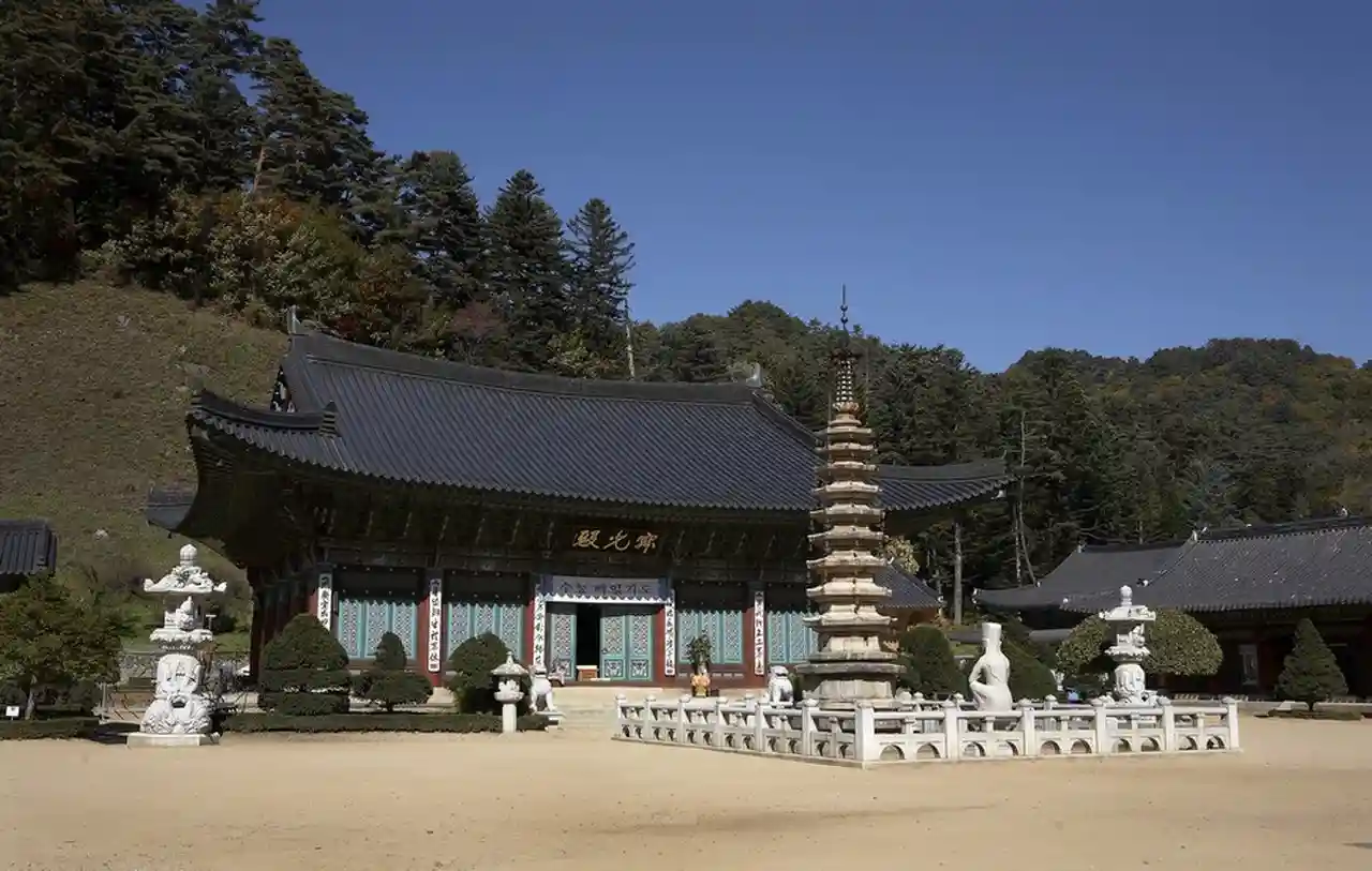 Woljeongsa () is a head temple of the Jogye Order of Korean Buddhism, located on the eastern slopes of Odaesan in Pyeongchang County, Gangwon Province, South Korea. Woljeongsa was founded in 643 by the Silla monk Jajang. Read more on Wikipedia