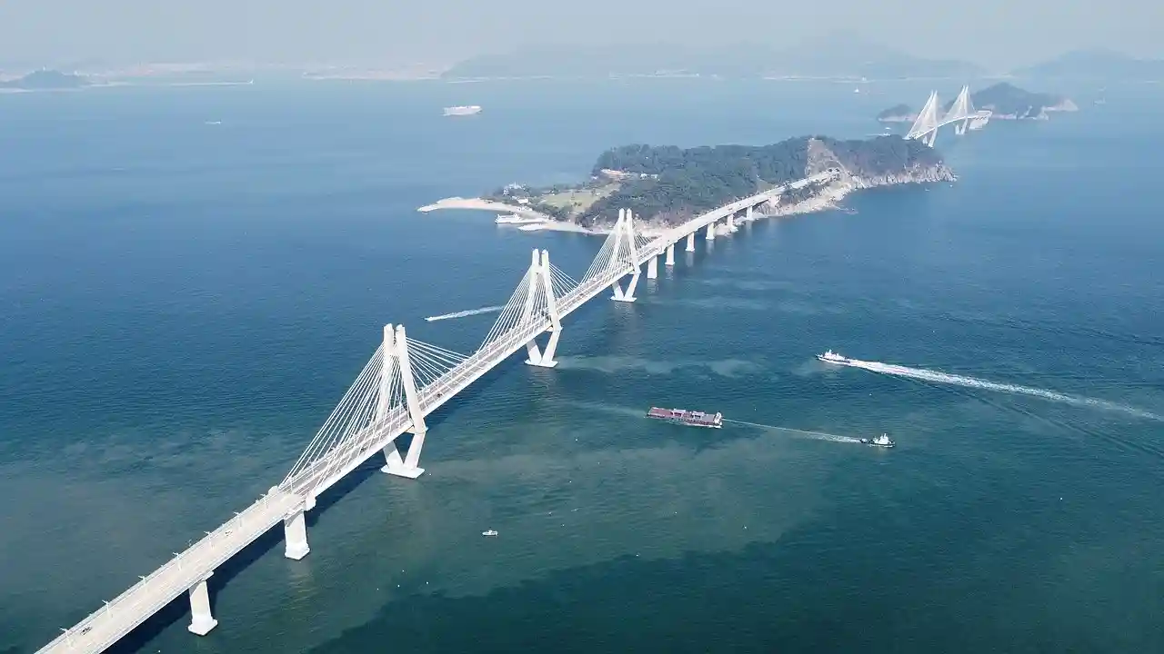 The Busan–Geoje Fixed Link (or Geoga Bridge) is an 8.2-kilometer (5.1-mi) bridge-tunnel fixed link that connects the South Korean city of Busan to Geoje Island. The name of the bridge is Geoga Bridge (거가 대교). The route opened on December 13, 2010 and shortens the travelling distance between Geoje Island and Busan by about 60 kilometers (37 mi). The new road has two lanes in each direction and carries National Road 58.Yeoward 2010, p. 26. Read more on Wikipedia