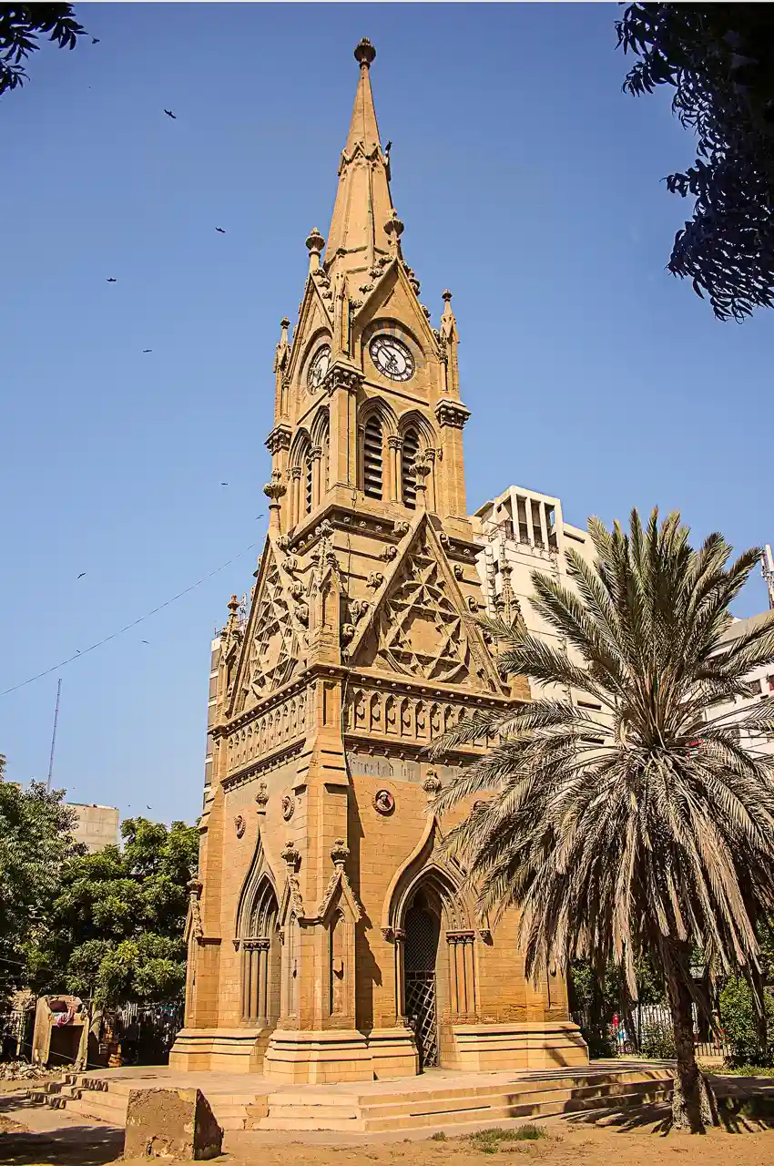 Merewether Clock Tower or Merewether Tower () Reprinted by Pakistan Herald Publications Ltd, Karachi Pg 62 is a neo-Gothic clocktower built during the Victorian era in Karachi, Pakistan. The tower is a landmark in central Karachi, and is at the termini of two of the most important roads in central Karachi: Muhammad Ali Jinnah Road and I. I. Chundrigar Road. The tower used to mark the boundary of the city when arriving from the port at Kiamari, and marked the dividing line between Karachi's Old Town and its newer European quarters to the east. It currently is the westernmost point of the Serai Quarter. Read more on Wikipedia