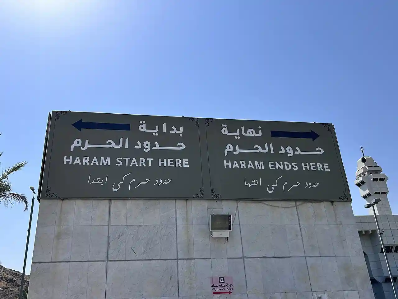 The miqat () is a principal boundary at which Muslim pilgrims intending to perform the Ḥajj or ʿUmrah must enter the state of iḥrām (lit. 'prohibition'), a state of consecration in which certain permitted activities are made prohibited. Read more on Wikipedia
