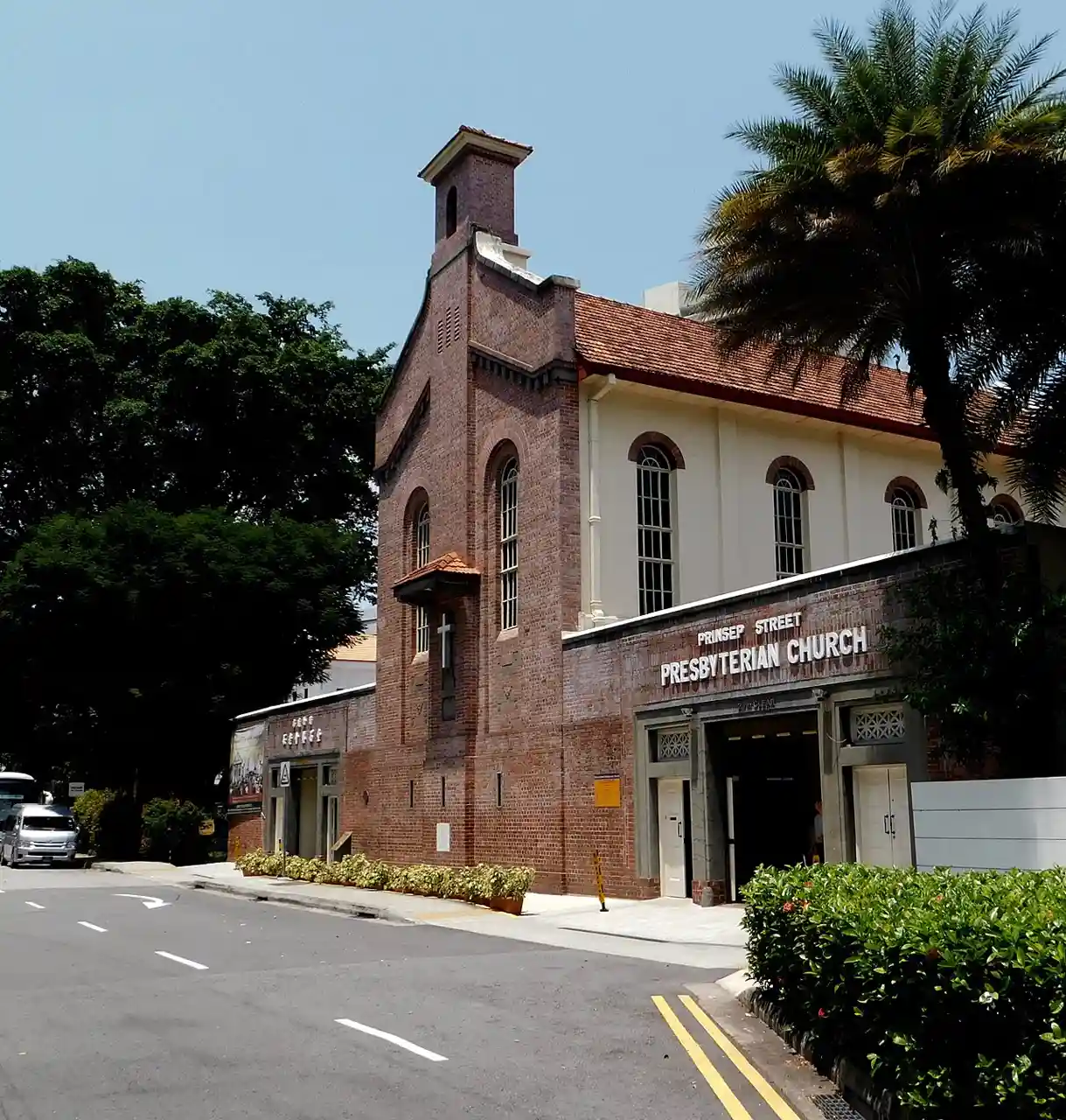 The Prinsep Street Presbyterian Church (Chinese: 布连拾街长老会磐石堂) is located on Prinsep Street within Singapore's central business district. It is approximately 350 metres from Rochor MRT station. Read more on Wikipedia