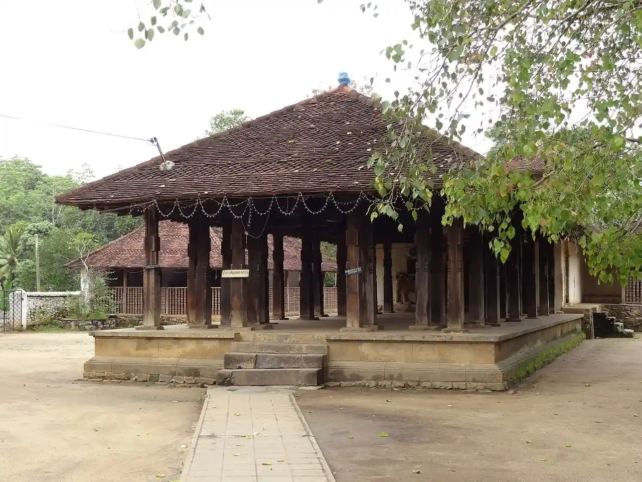 Embekka Devalaya (Embekka Temple) was built by the King Vikramabahu III of Gampola Era (AD 1357–1374) in Sri Lanka. The Devalaya is dedicated to Kataragama deviyo. A local deity called Devatha Bandara is also worshiped at this site. The shrine consists of three sections, the "Sanctum of Garagha", the "Digge" or "Dancing Hall" and the "Hevisi Mandapaya" or the "Drummers' Hall". The Drummers' Hall has drawn the attention of visitors to the site, due to the splendid wood carvingsBooklet Kandy Embekke Wood Carvings by M. W. E. Karunaratna of its ornate pillars and its high pitched roof. Read more on Wikipedia