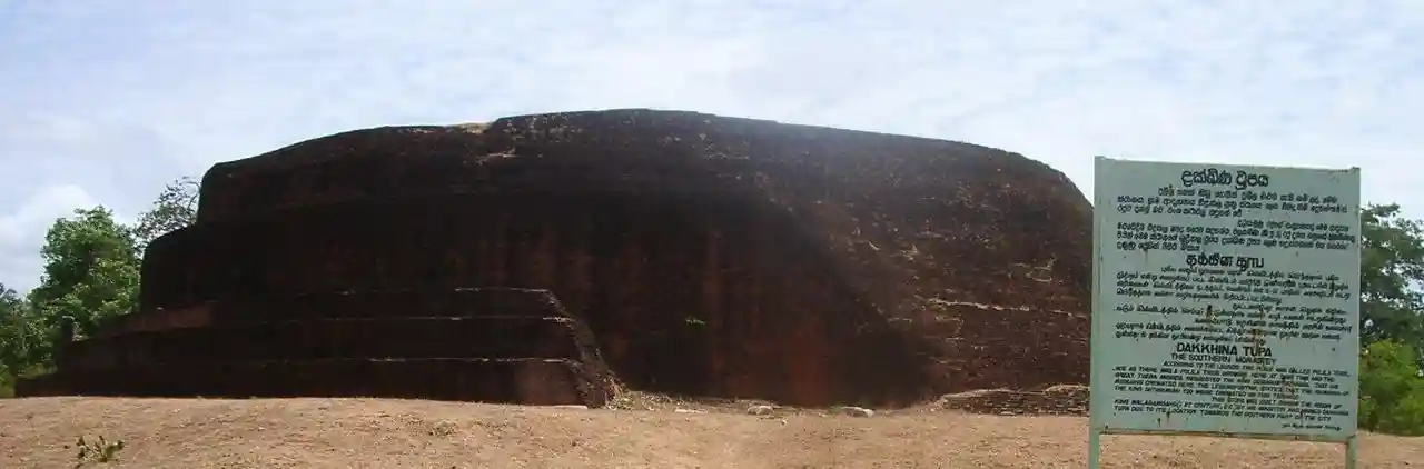 Dakkhina Stupa (, ) is a 2nd-century BC large brick Stupa in Anuradhapura, Sri Lanka. Earlier thought to be a monument of King Elara,Dr.James Rutnam, 1981, The Tomb of Elara at Anuradhapura https://noolaham.org/wiki/index.php/The_Tomb_of_Elara_at_Anuradhapura?uselang=en it was later identified as the Stupa of ancient Dakini (Dakkhina) Vihara by Senarath Paranavithana with the help of a Brahmi inscription of the 3rd century A.D. unearthed from the ground between the southern and western Vahalkadas of the Stupa.Dakkhina Stupa by Lanka Pradeepa, 12 December 2020, retrieved 12 March 2022 Read more on Wikipedia