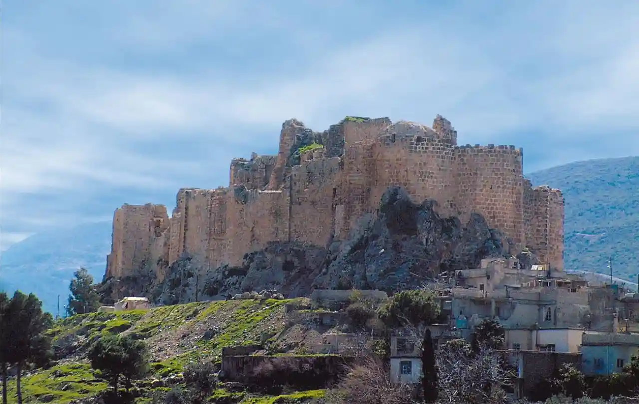 Masyaf Castle () is a medieval structure in the town of Masyaf in Hama Governorate, Syria, situated in the Orontes Valley, approximately 40.03 kilometres to the west of Hama. It served to protect the approach to other Ismaili castles in the Syrian Coastal Mountain Range (Jabal Ansariya) at a site controlling the trade routes to cities further inland such as Banyas. The castle itself stands on a platform about 20 metres above the surrounding plain. It became famous as the stronghold from which Rashid ad-Din Sinan, known as the Old Man of the Mountain, ruled from 1166-1193. He was a leader of the Syrian branch of the Shia Nizari Isma'ili sect, also known as the Assassins, and a figure in the history of the Crusades. Read more on Wikipedia