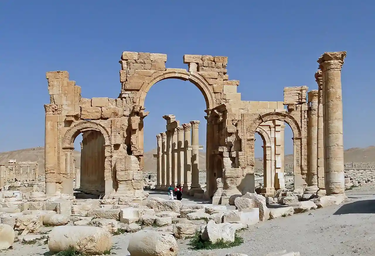 The Monumental Arch, also called the Arch of Triumph () or the Arch of Septimius Severus, was an ornamental archway in Palmyra, Syria. It was built in the 3rd century during the reign of emperor Septimius Severus. Its ruins later became one of the main attractions of Palmyra until it was officially destroyed by the ISIS in 2015. Most of its stonework still survives and there are plans to rebuild it using anastylosis. Read more on Wikipedia