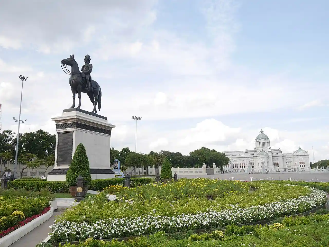 Dusit Palace (, RTGS: Phra Ratcha Wang Dusit) is a compound of royal residences in Bangkok, Thailand. Constructed over a large area north of Rattanakosin Island between 1897 and 1901 by King Chulalongkorn (Rama V). The palace, originally called Wang Suan Dusit or 'Dusit Garden Palace' (วังสวนดุสิต), eventually became the primary (but not official) place of residence of the King of Thailand, including King Chulalongkorn (Rama V), King Vajiravudh (Rama VI), King Prajadhipok (Rama VII), King Bhumibol Adulyadej (Rama IX) and King Vajiralongkorn (Rama X). The palace covers an area of over and is dotted between gardens and lawns with 13 different royal residences. Dusit Palace is bordered by Ratchwithi Road in the north, Sri Ayutthaya Road in the south, Ratchasima Road in the west and U-Thong Nai Road on the east. Read more on Wikipedia
