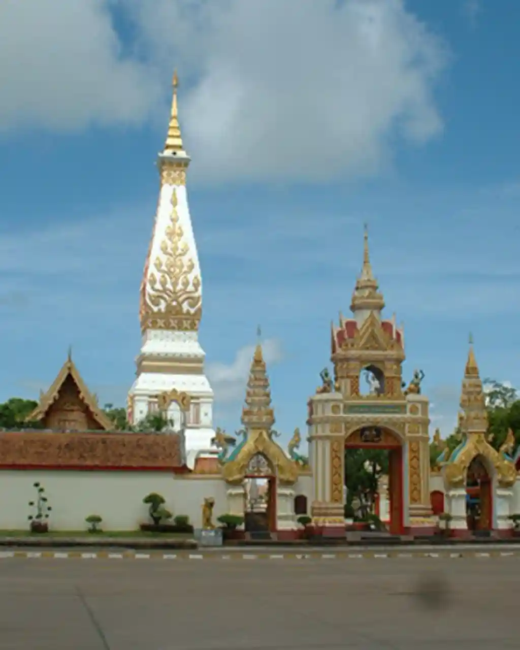 Wat Phra That Phanom () is a Buddhist temple in the That Phanom District in the south of Nakhon Phanom Province, all within the Isan region of Thailand near the Lao border. According to local legend, the temple contains in the pagoda the Phra Uranghathat (พระอุรังคธาตุ)/Phra Ura (พระอุระ)/Buddha's breast bones. As such, it is one of the most important structures for Theravada Buddhists and the most important Buddhist site in the province, with an annual week-long festival being held in the town of That Phanom to honour the temple. These festival attract thousands of people who make pilgrimages to the shrine. In Thai folk Buddhism, Wat Phra That Phanom is a popular pilgrimage destination for those born in the year of the Monkey. Read more on Wikipedia