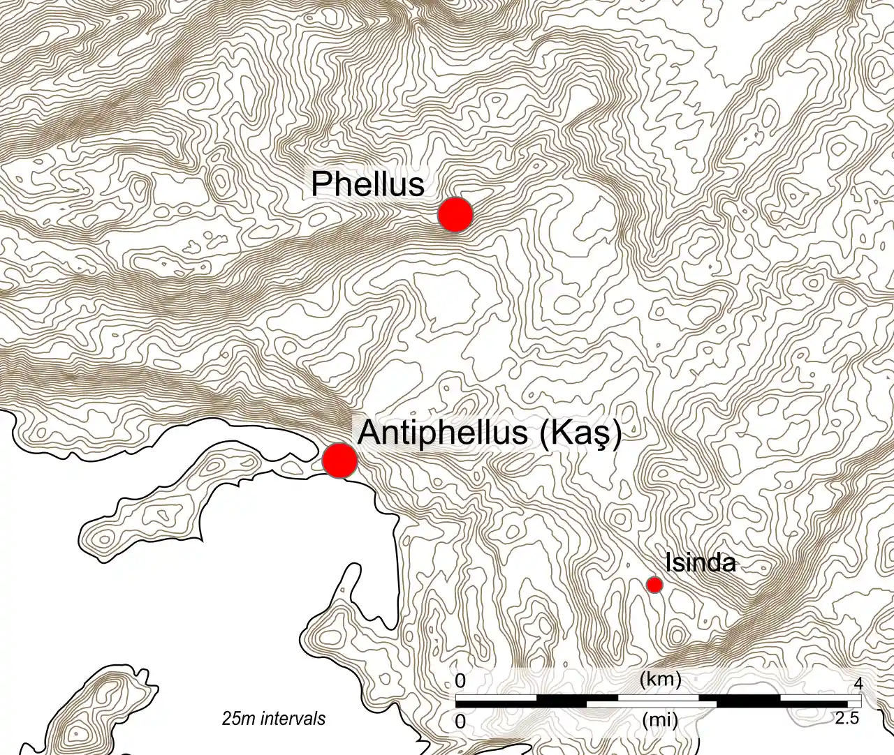 Antiphellus or Antiphellos (, ), known originally as Habesos, was an ancient coastal city in Lycia. The earliest occurrence of its Greek name is on a 4th-century-BCE inscription. Initially settled by the Lycians, the city was occupied by the Persians during the 6th centuryBCE. It rose in importance under the Greeks, when it served as the port of the nearby inland city of Phellus, but once Phellus started to decline in importance, Antiphellus became the region's largest city, with the ability to mint its own coins. During the Roman period, Antiphellus received funds from the civic benefactor Opramoas of Rhodiapolis that may have been used to help rebuild the city following the earthquake that devastated the region in 141. Read more on Wikipedia