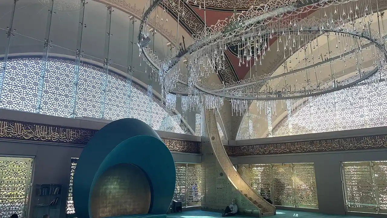 Şakirin Mosque (pronounced Shakirin) is a mosque in Istanbul, Turkey. The building is located at one of the entrances of the historic Karacaahmet Cemetery in Üsküdar. It was built by the Semiha Şakir Foundation in memory of İbrahim Şakir and Semiha Şakir and opened on 7 May 2009. According to newspaper reports, it is the most carbon-neutral mosque in Turkey. Read more on Wikipedia