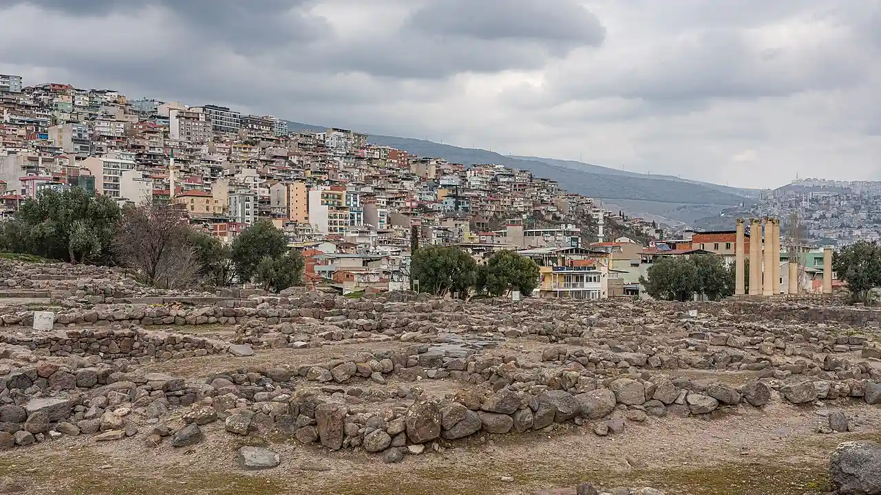 Old Smyrna (Greek Παλαιὰ Σμύρνα, Palaia Smyrna, Turkish Eski Smyrna) is an ancient Greek exonym first known to have been applied by Strabo (14.1.37) to a city of the endonym Σμύρνα, Smyrna. It had existed at the same location on the Bay of Smyrna, Turkey, since prehistoric times. Old Smyrna experienced what was termed dioecism (dioikismos), the removal of a city from its subordinate constituents, the reverse of synoecism, at the hands of its Lydian conquerors under their king, Alyattes, in 585 BC, in the Archaic Period of Greece. It is mentioned by Herodotus (1.16.2). Such a procedure, which was standard among the ancient Greeks, razes the center of the city and distributes the population to komai, or "villages," (where they may have lived anyway). Apparently they did not suffer andrapodismos, the massacre of the men and the sale of the women and children into slavery, but were allowed to live komedon, "in villages," albeit without a polis of their own. Read more on Wikipedia