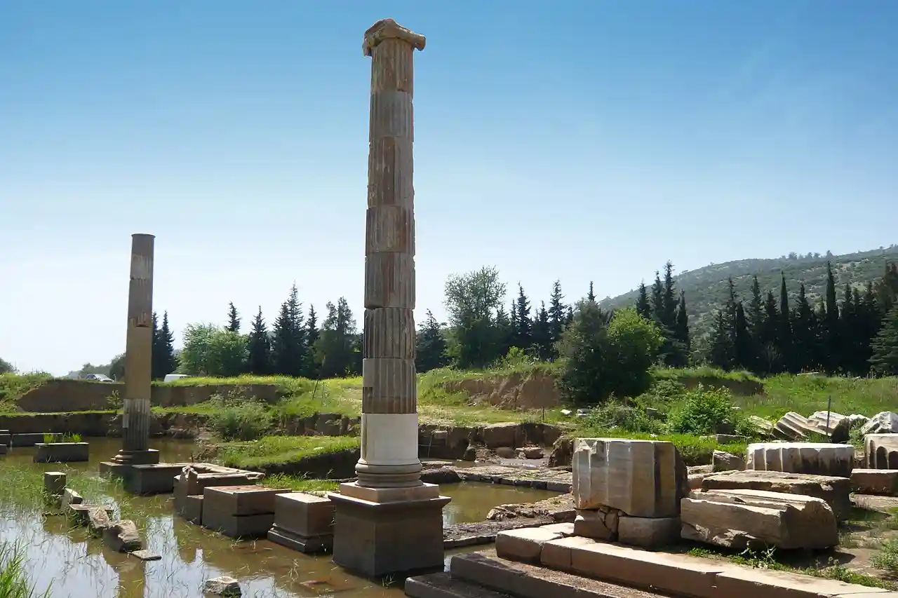 Claros (; , Klaros; ) was an ancient Greek sanctuary on the coast of Ionia. It contained a temple and oracle of Apollo, honored here as Apollo Clarius. It was located in the territory of Colophon, which lay twelve kilometers to the north, one of the twelve cities of the Ionian League. The coastal city Notion lay two kilometers to the south. The ruins of the sanctuary are now found north of the modern town Ahmetbeyli in the Menderes district of Izmir Province, Turkey. Read more on Wikipedia