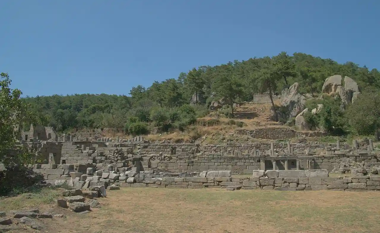 Labraunda ( Labranda or Λάβραυνδα Labraunda) is an ancient archaeological site five kilometers west of Ortaköy, Muğla Province, Turkey, in the mountains near the coast of Caria. In ancient times, it was held sacred by Carians and Mysians alike. The site amid its sacred plane trees Herodotus, v.119 was enriched in the Hellenistic style by the Hecatomnid dynasty of Mausolus, satrap (and virtual king) of Persian Caria (c. 377 – 352 BCE), and also later by his successor and brother Idrieus; Labranda was the dynasty's ancestral sacred shrine. The prosperity of a rapidly hellenised Caria occurred during the 4th century BCE.The cultural background is presented in S. Hornblower, Mausolus (Oxford: Clarendon Press) 1982. Remains of Hellenistic houses and streets can still be traced, and there are numerous inscriptions. The cult icon here was a local Zeus Labrandeus (Ζεὺς Λαβρανδεύς), a standing Zeus with the tall lotus-tipped scepter upright in his left hand and the double-headed axe, the labrys, over his right shoulder. The cult statue was the gift of the founder of the dynasty, Hecatomnus himself, recorded in a surviving inscription.Alfred Westholm, Labraunda I.2 The Architecture of the Hieron, inscription no. 6 (1963). Read more on Wikipedia
